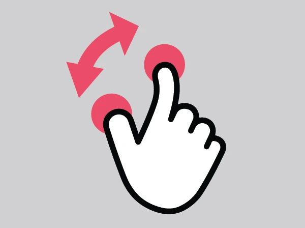 두 손가락을 화면에 댄 상태에서 시계 방향 또는 반시계 방향으로 돌리는 제스처입니다. 화면이나 객체를 회전시킬 때 사용합니다.