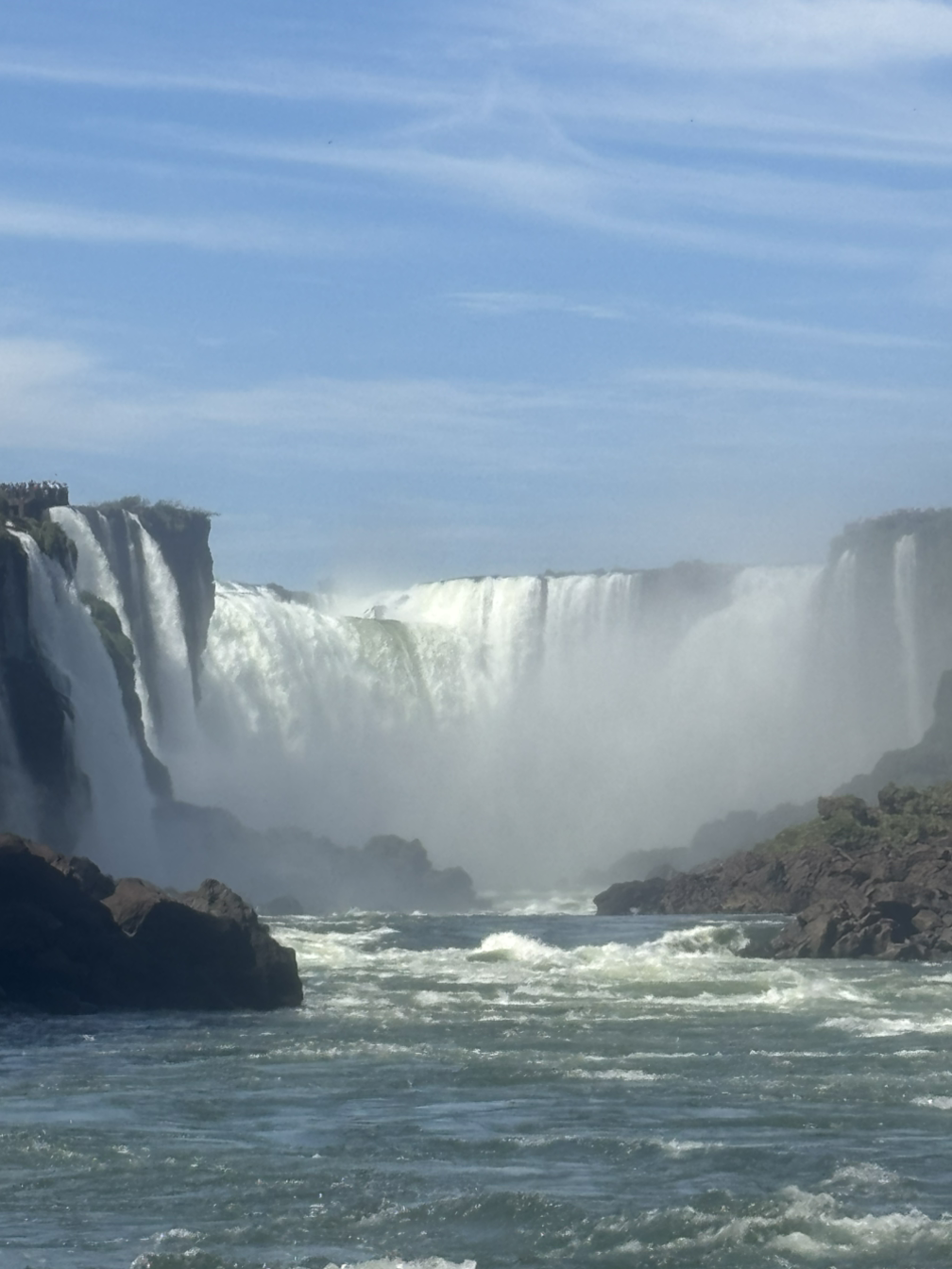 대충 뭐 트레인 타고 올라가야 한대서 갔더니 티켓을 끊어야 된단다. 9시 30분 걸 타고 올라가면 11시에 내려오는 티켓. 직원에게 내 보트투어 시간이 10:15 랬더니 그럼 대충 살방살방 걸어서 상부 코스를 둘러보고 내려오란다. 트레인은 보트투어 끝나고 타라하셨다. 대충 걷다보니 허기져 미리 챙겨 간 샌드위치에 블랙 커피 한잔 샤삭 끝내고 보트투어 줄을 섰다. 잠깐 화장실 가는 길에 보트투어 직원에게 이 곳이 보트투어 집합장소가 맞는지, 10:15 투어 줄이 맞는지 물어보니 내 투어 한타임 앞 줄 이란다. 그리고 내 투어 바우처를 실물 티켓으로 바꿔야 된다고. 투어 데스크로 향했는데 웬걸. 줄이 길지는 않은데 업무처리가 늦어도 너무 늦다. 이거 뭐 티켓 바꾸러 갔다 10시가 넘을 지경. 아슬아슬 9:56 경 티켓으로 교환하고 화장실도 못 들리고 바로 투어장소로 향했다. 10:15 가 넘었지만 기다림의 연속. 드디어 트럭을 타고 투어 장소로 향하는데 벌써 신이 난다. 물에 홀딱 젖을 생각에 벌써 들뜸. 안에 입고 간 수영복만 입고 구명조끼 착용 후 보트를 탔다. 이렇게 협곡에서 막 달려대는 보트는 처음인데 놀이공원 마냥 너무 재밌는 것. 그리고 보트에서 본 폭포 경관이 너무 아름다웠다. 제일 큰 폭포 아래로 들어가는데 홀딱 젖고 약간 무섭기도 하면서 엄청 재밌었다. 그래 이 투어는 돈이 아깝지 않다는 생각이 들었다. 이과수 국립공원은 이 보트투어를 하려고 온 거구나 싶었다. 투어가 끝나고 내려준 곳은 어디인지 모르겠지만 레스토랑이 있었다. 홀딱 젖은 운동화에 썩은 내가 날 것 같아 쪼리 하나를 사서 갈아신고 뷔페를 즐겼다. 근데 아르헨티나 뷔페 클라스. 바베큐 존이 따로 있는데 소고기가 무더기로 덮여있다. 직원에게 익힘의 정도를 얘기하면 직원이 무더기 중 하나를 들고 오고 고기를 선택할 수 있다. 손님이 빠꾸하면 직원이 다른 덩이를 가져와 니즈에 맞는 고기를 대령하는 식. 가니쉬도 무더기로 쌓여있는데 아무래도 한국에선 채소 과일이 비싸다 보니 엄청 찔끔 나오는데 무더기로 쌓아 먹을 수 있어 너무 좋았다.