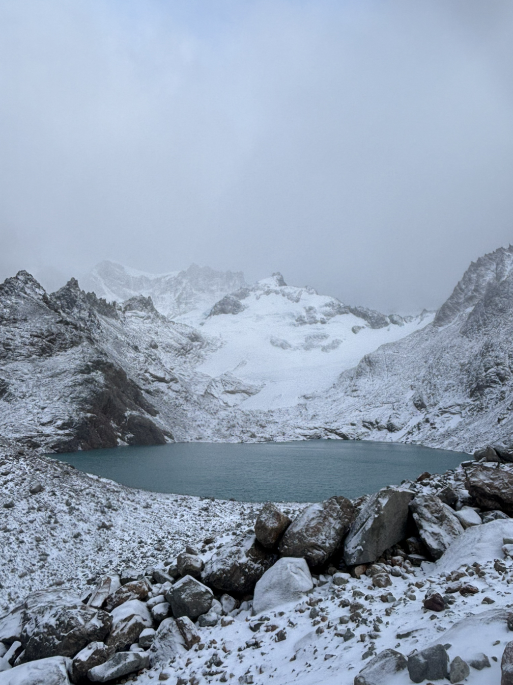 그래서 전 남친들과 등산할 때도 내가 늘 앞장섰고, 청계산은 물도 쉼도 없이 왕복 두 시간 만에 완행하고 닭백숙을 조졌었다. 나의 등산 경험 중 가장 빡셌던 건 한라산 영실코스. 백록담을 목표로 했으나 사전예약에 실패해서 갔던 곳. 설경이 눈이 부시게 아름다웠으나 마지막 한 시간 가량의 끝없는 계단지옥은 사람을 돌아버리게 했다. 그래도 정상에서 야무지게 컵라면 먹고 쉬며 왕복 여섯시간 만에 마무리 하였다. 그 때 놀랐던 것은 인생 첫 설산 등반에 아이젠이며 스틱이며 바리바리 준비해 간 나와 달리 무슨 얇디 얇은 트레킹화 신고 산행하는 사람들과 그 보다 더한 초딩 잼민이들의 슬라이딩 산행. 그래서 이번 파타고니아 산행도 오바 떨 필요 없다 생각했다. Chat GPT가 5월은 아직 아이젠 낄 정도도 아니라고 했고. 심지어 등산 초입 부분은 평지에다 중간중간 나오는 언덕배기들은 내게 식은 죽 먹기였다. 아니 마지막 1Km 구간이 헬 이라더니 고작 이 정도 가지고..? 에효 남미사랑 카페에 파타고니아 등산하실 분 들은 미리 청계산부터 연습하고 오라고 후기 남겨줘야겠다 하며 자만심에 뿜뿜하던 그 때. 진짜 헬 구간이 나타났다. 눈이 소복히 쌓인 90도 직선 절벽 구간. 역시 사람은 늘 겸손해야 된다는 것을. 잠시 자만했던 내게 대자연이 혼구녕을 내주는 기분이었다.
