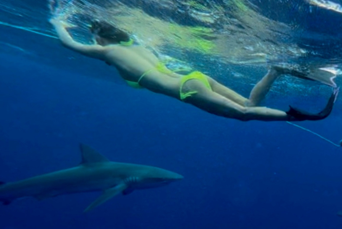 뼈 밖에 없는 비키니를 입은 내 모습이 마치 작은 Crab 같아서 상어한테 먹히는 거 아닌가 약간 걱정되었다. 그렇게 상어들의 장소에 도착했고 역시나 나의 스상무님이 1빠로 입수했다. 나는 스상무님의 뒤를 따라 당당히 2빠로 입수했다. 깊은 바다수영은 처음이라 약간 긴장되었으나, 푸른 밧줄이 있어 그걸 잡고 따라 들어가면 되었다. 신나서 들어가 보니 생각보다 상어들이 많이 있었고, 처음 보는 경이로운 모습에 감탄을 금치 못했다.
