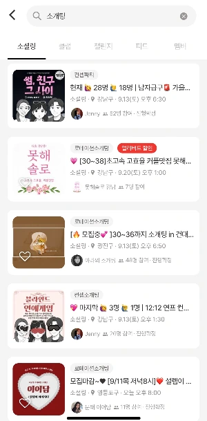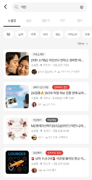어플 중에서는 '문토' 어플을 많이 쓴다고 한다. 문토 어플을 설치했다면 <소개팅> <미팅> <로테이션>을 먼저 검색해볼텐데, 스크롤을 내려도 내려도 끝이 없을만큼 다양한 프로그램이 뜬다. 신세계다........ 정말 신세계다.
