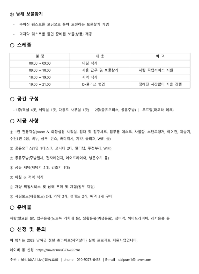 작년에 남편이 다녀왔던 남해바다 워케이션 모집 공고를 보고