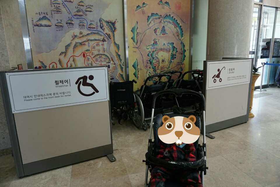 계단을 이용하여 2층 관람 시에는 아기띠를 이용하니