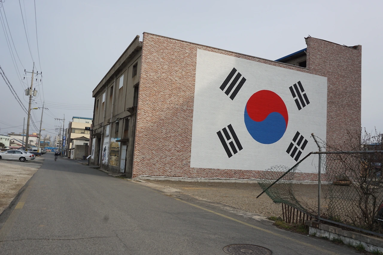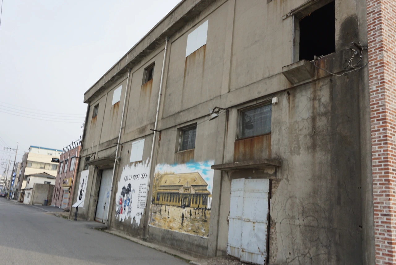 멀리서도 보이는 태극기가 붙어있는 곳은 장미동 구 일본인 창고라고 한다.