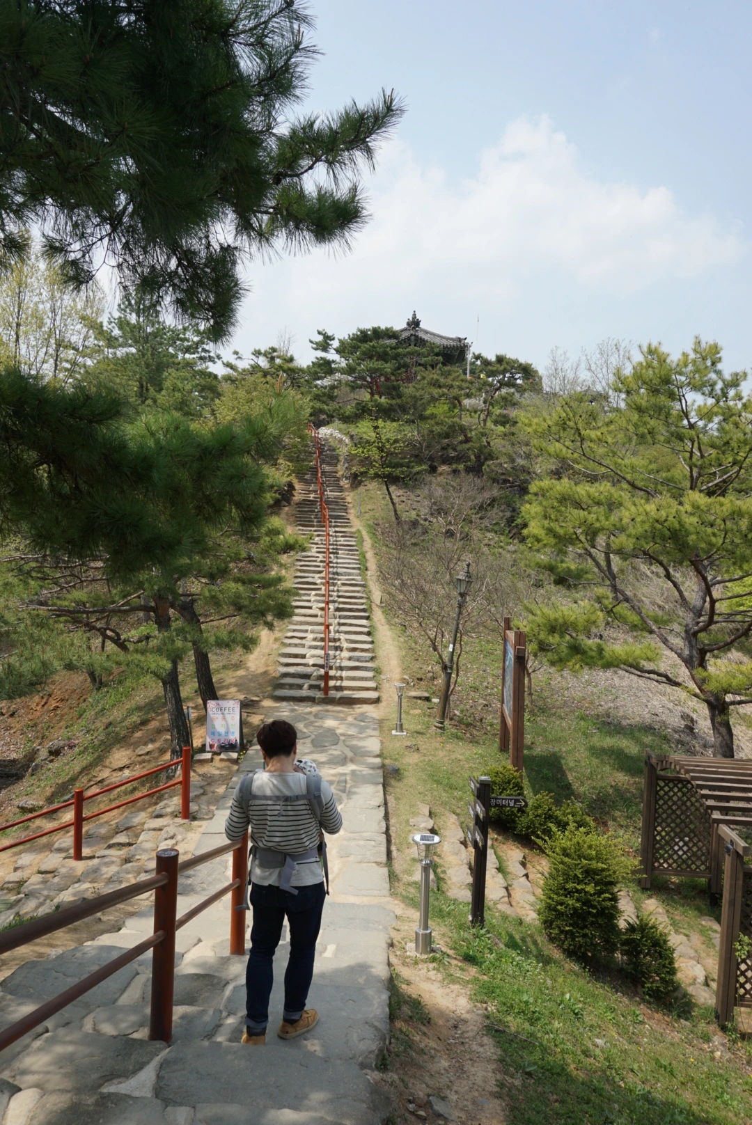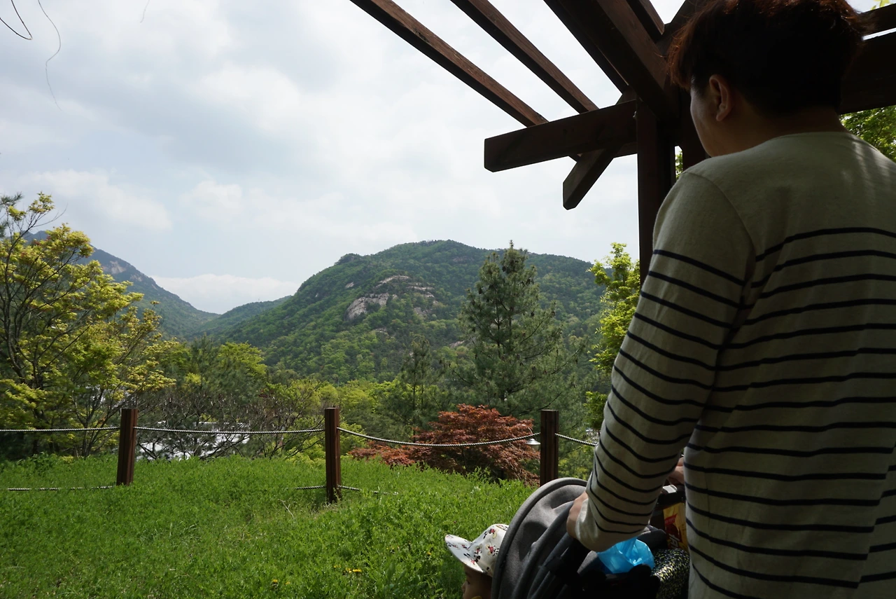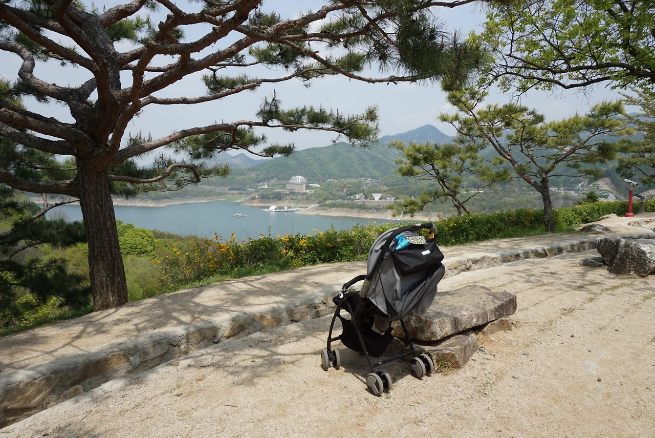 계단이 많이 보여 유모차는 잠시 나무 밑에 파킹해 두고