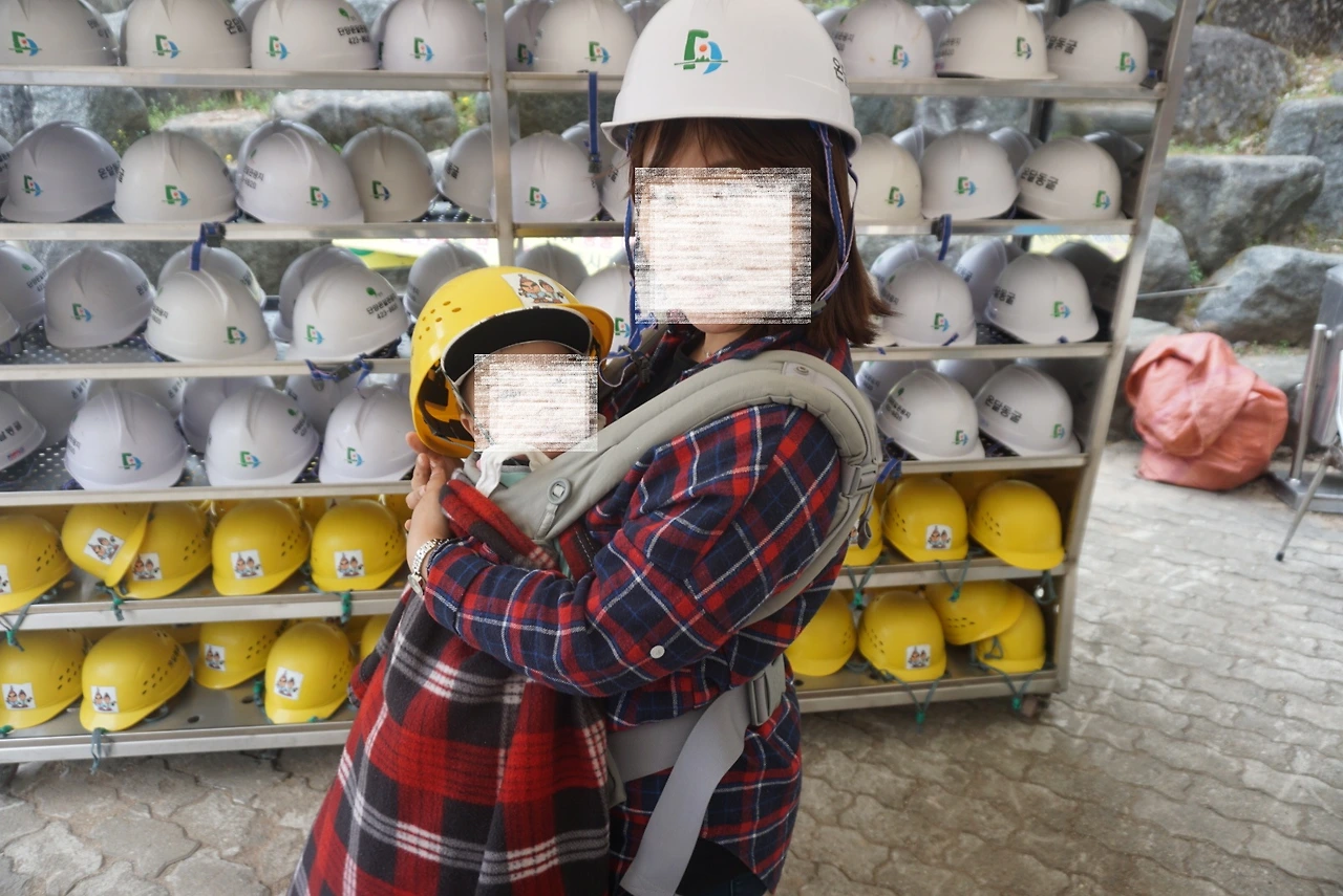 동굴로 들어가는 입구는 계단이 있어 유모차는 두고 아기띠로 내려갔다.