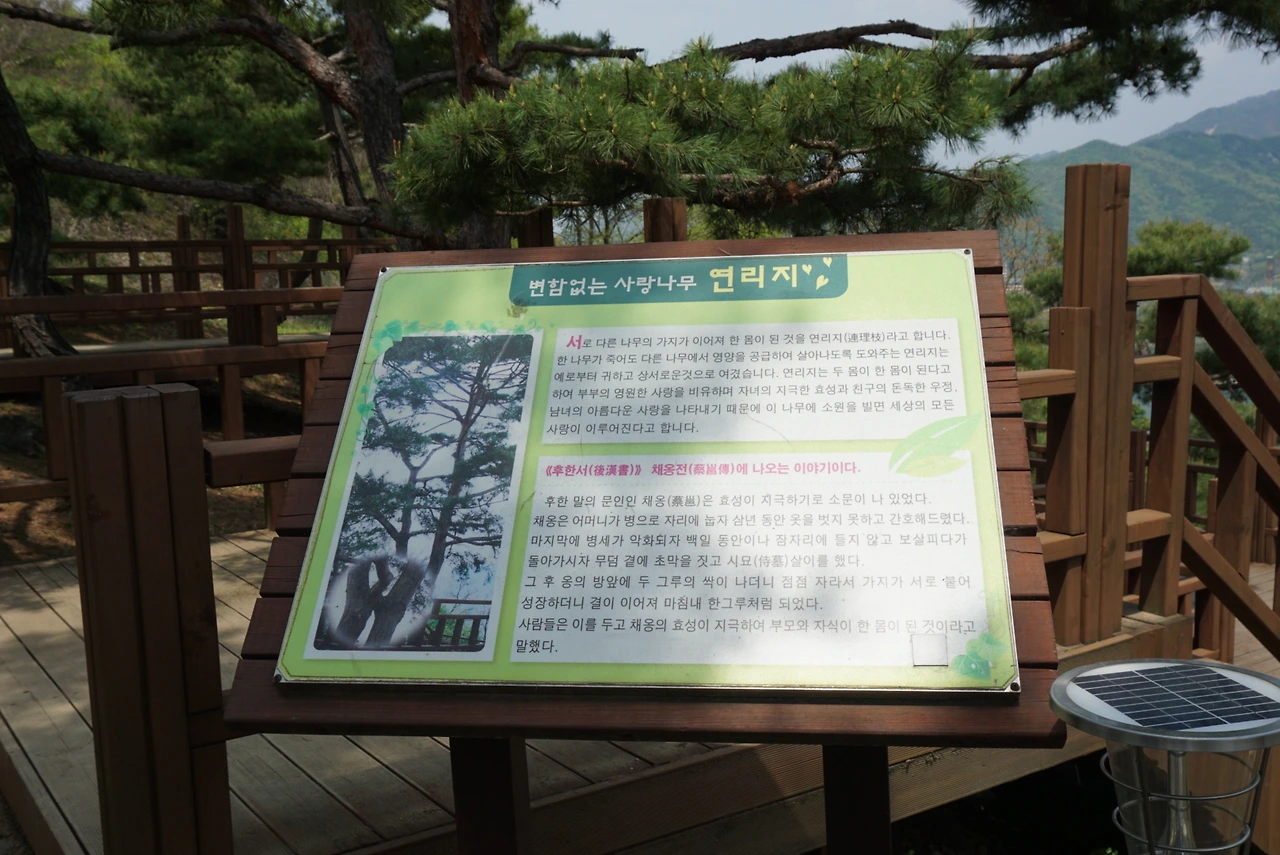 연리지 : 뿌리가 다른 나뭇가지가 서로 엉켜 마치 한 나무처럼 자라는 현상.