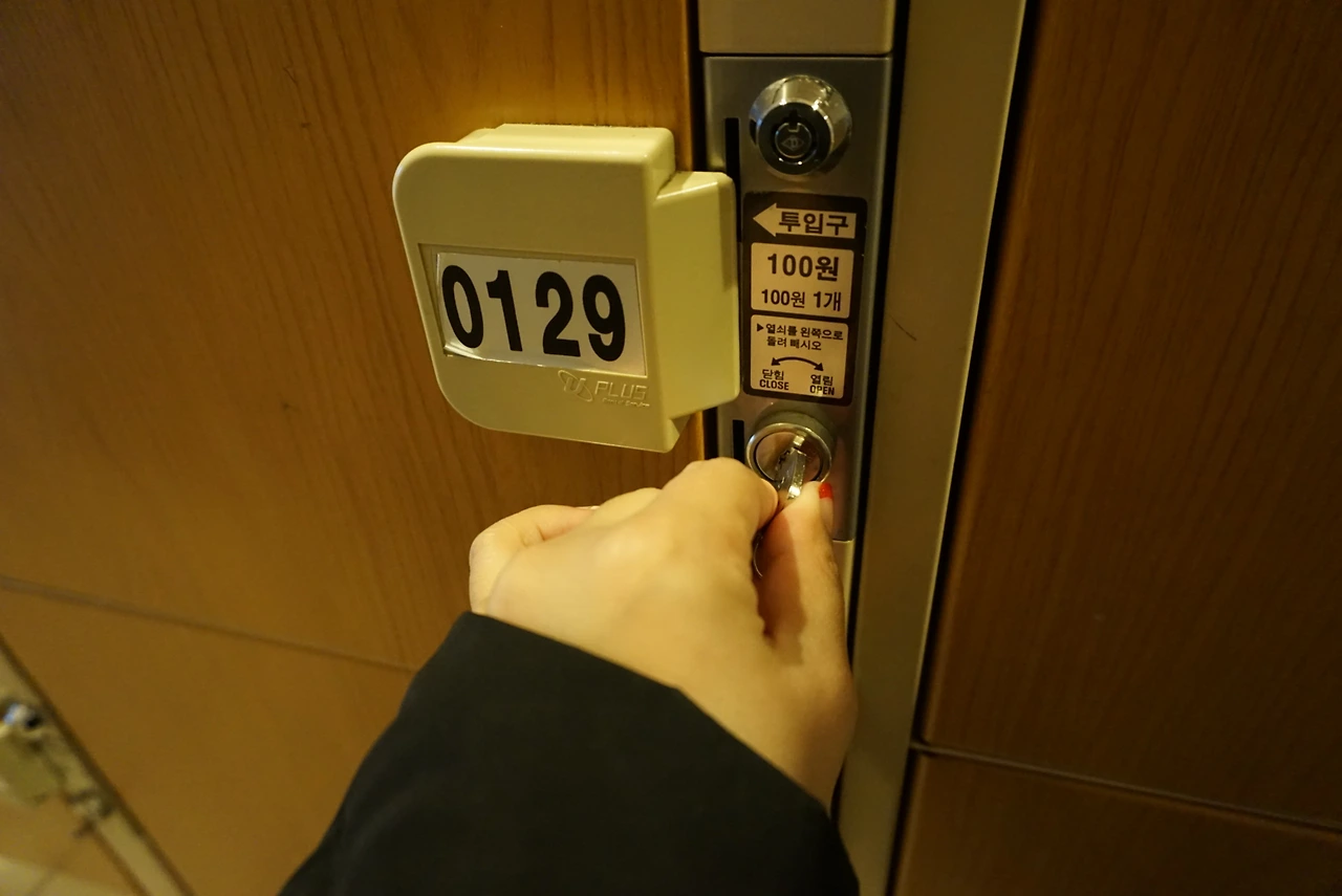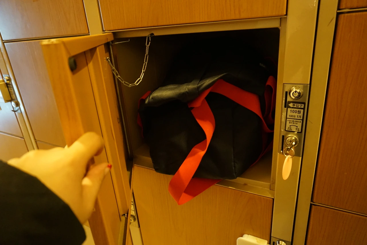 조금 더 가볍게 다니고자 물품보관함에 당장 필요없는 짐을 보관.
