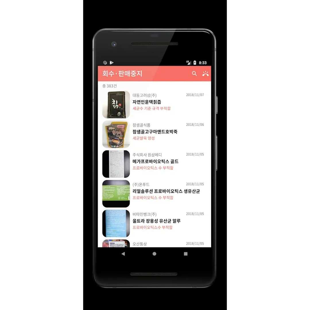 워치독은 공인 기관인 식품의약품안전처에서 제공하는 주의할 제품 정보를 실시간 알람으로 알려주기에 더욱더 믿고 거르게 된다.