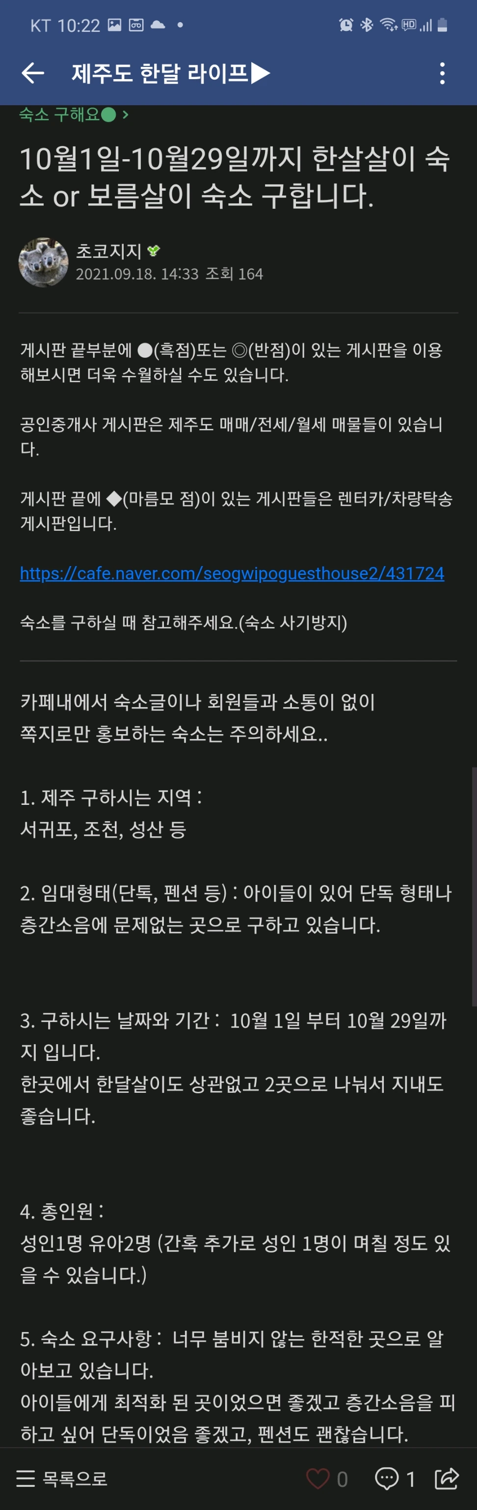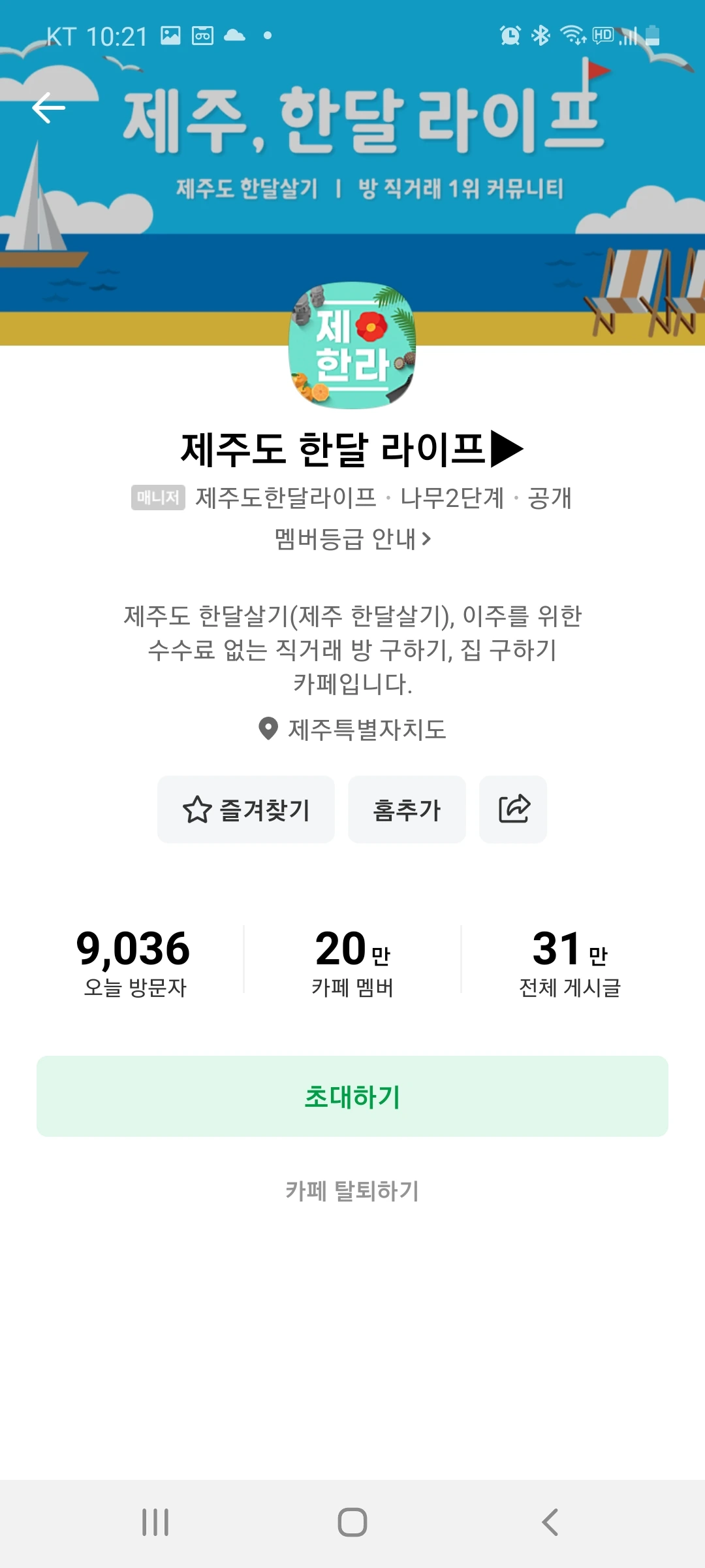 내가 한달살이 숙소와 여행 정보를 도움받은 네이버 카페 "제주도 한 달 라이프"와 "느영나영" 카페