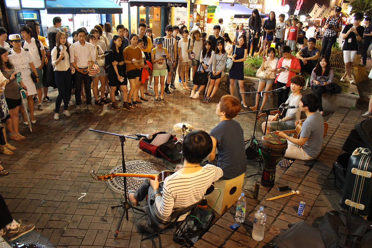 세계 최초의 비보이 전용극장이 있는 곳 홍대. 한국의 '흥', 젊은 문화. 홍대 길거리 버스킹, 비보이 공연.