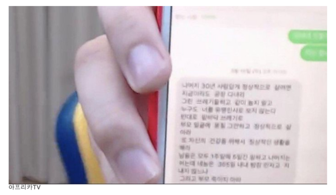 나는 이 기사를 보고 경악을 금치 못했다. 아버지의 문자의 내용 자체가 충격이라기보다는, 이걸 공개한 감스트의 행동이 이해가 가지 않았다. 이러한 지극히 개인적인 가족 문제를 공개하고 방송을 계속 진행해야만 했는가? 문자 전문을 카메라에 비추며 자신의 상황을 해명(?) 해야만 했는가?