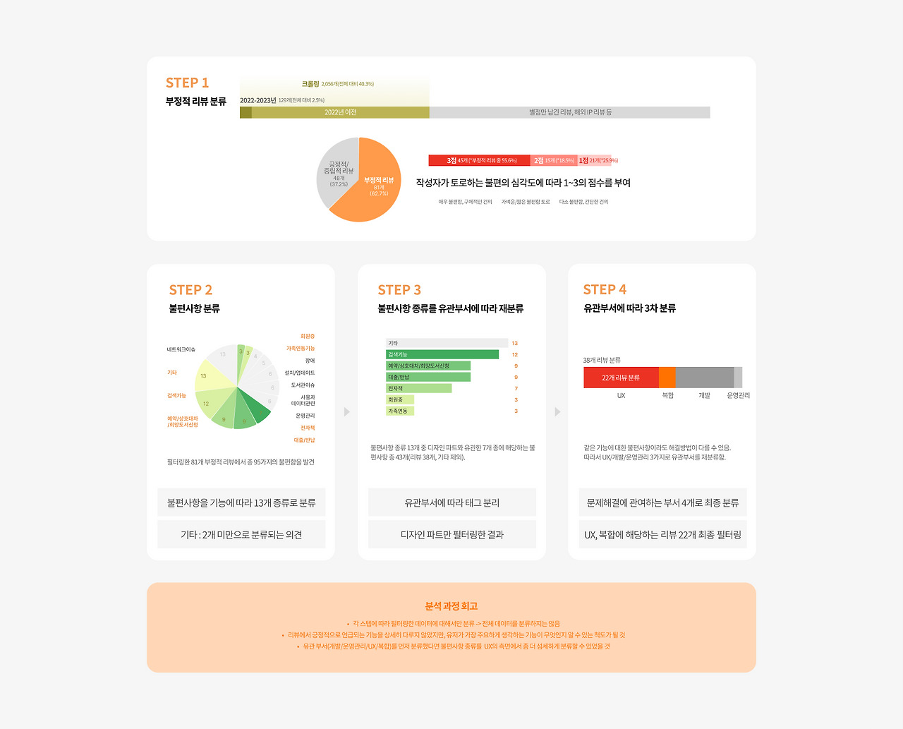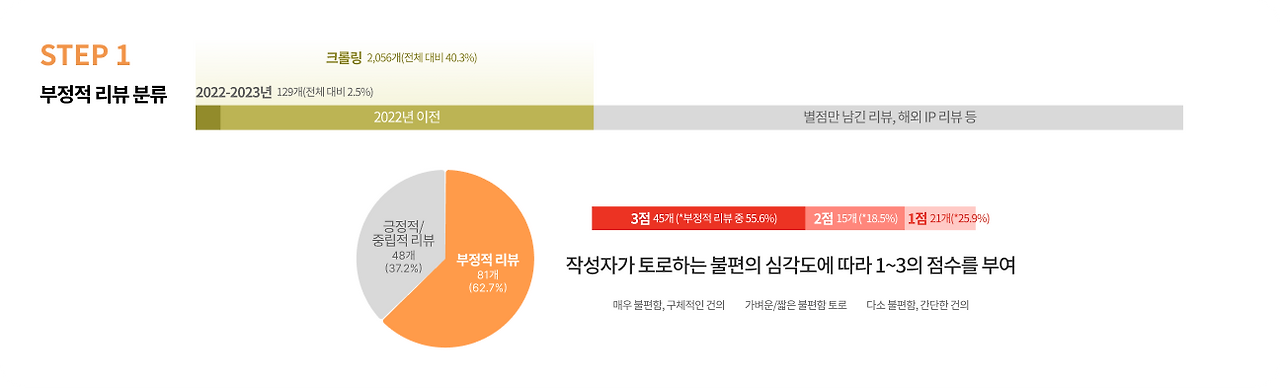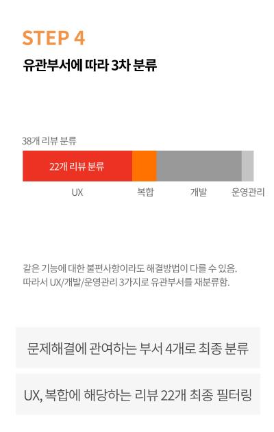 Step 3까지 거치며 걸러진 리뷰들 중에는 UX 디자인의 개선만으로 해결되지 않는 것들도 있었다.