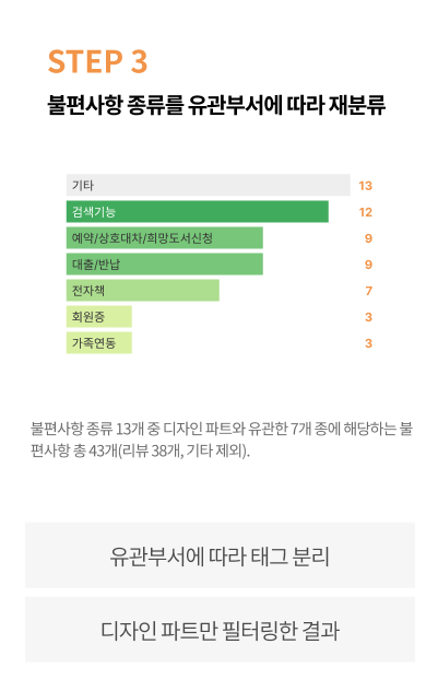 셋째, 13종의 불편사항 종류 중 디자인 파트 담당 기능 7개를 선별한다.
