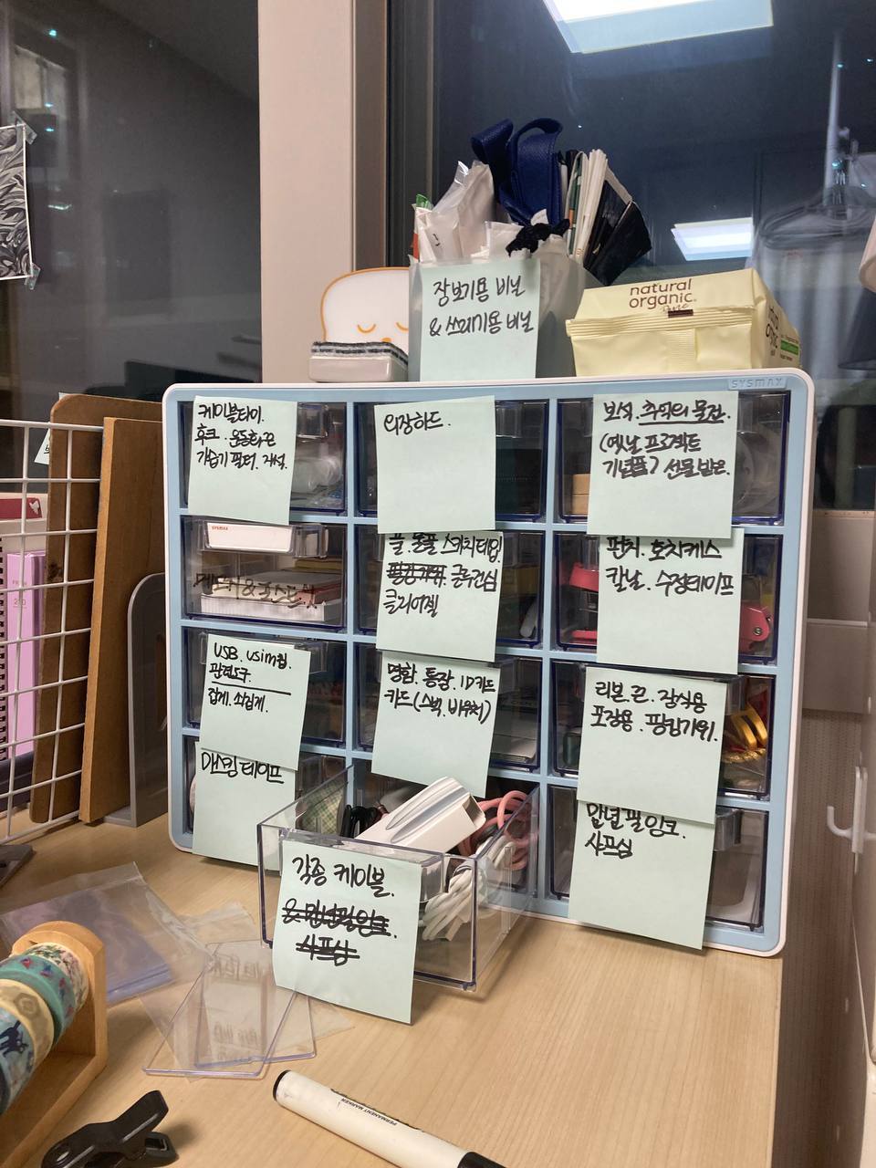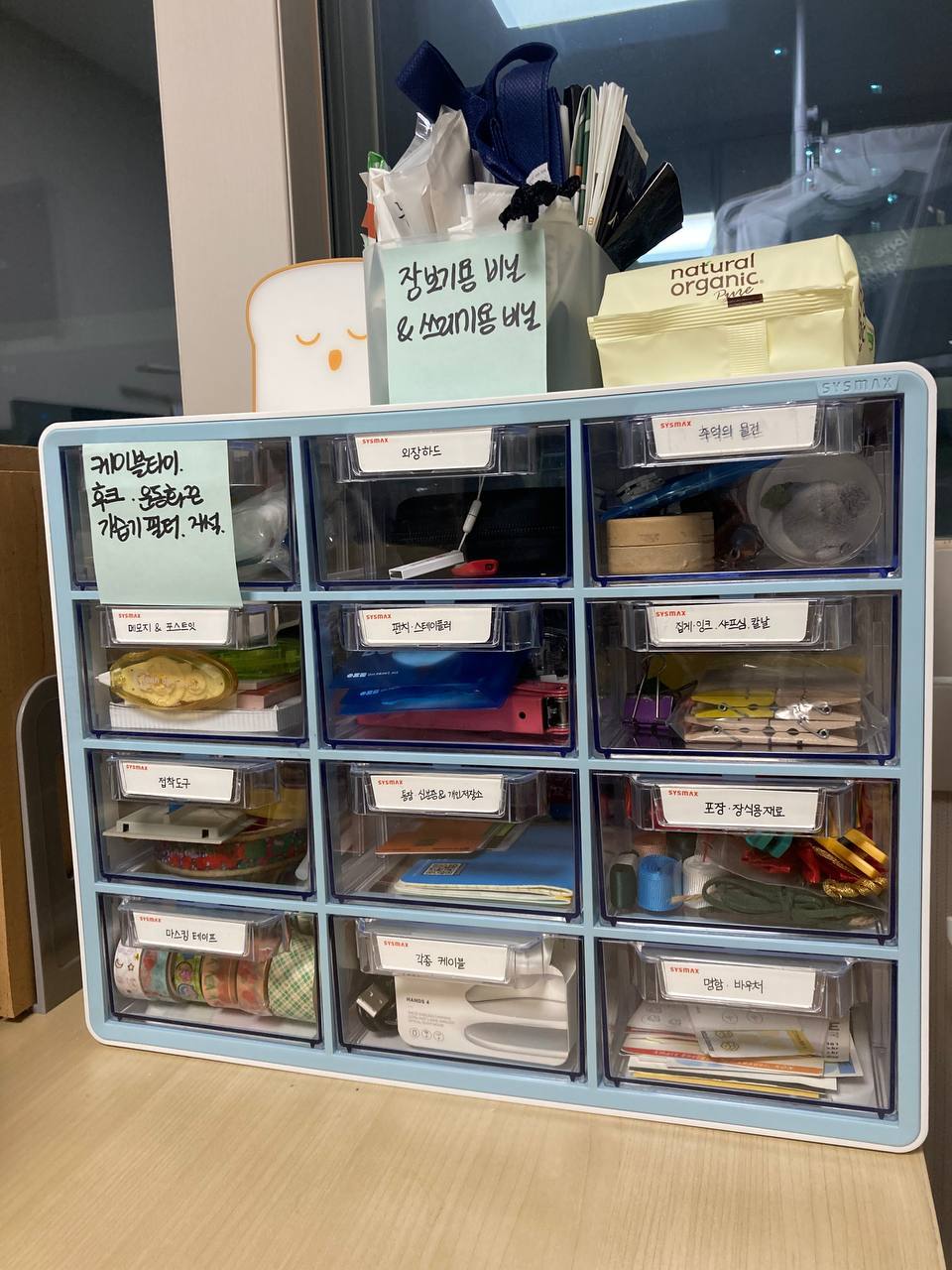 처음 구매했을 때 대강 물건들을 느낌적으로 분류해서 넣어뒀기 때문에, 아직 라벨링이 되어있지 않아 특정 물건을 찾을 때 종종 헷갈리던 참