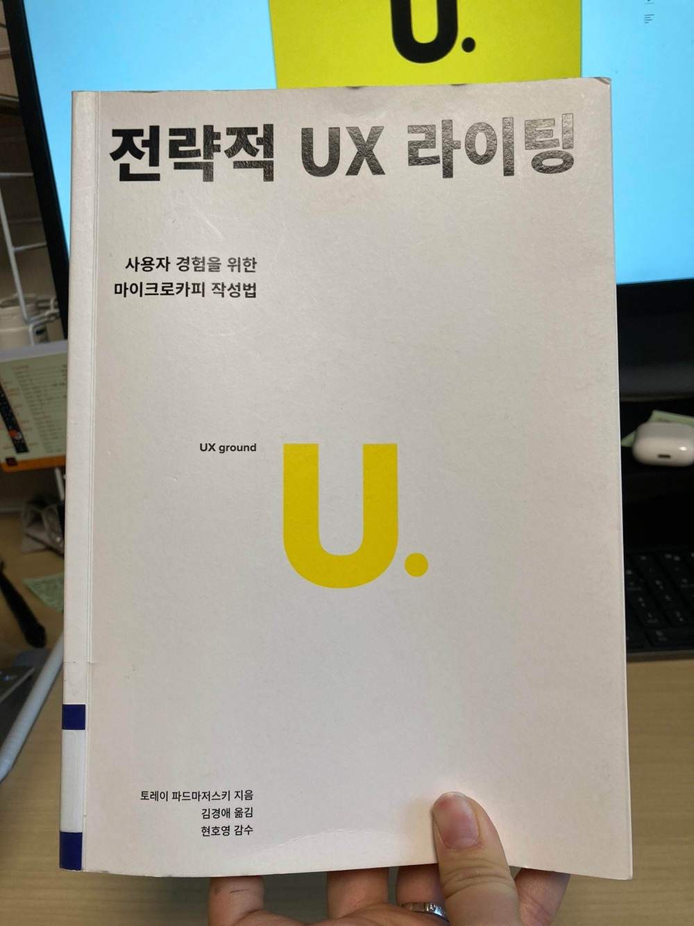 도서관에서 빌린 UX Writing 관련 서적. 생각보다 구체적이고 실무적인 내용에 인상깊었다!