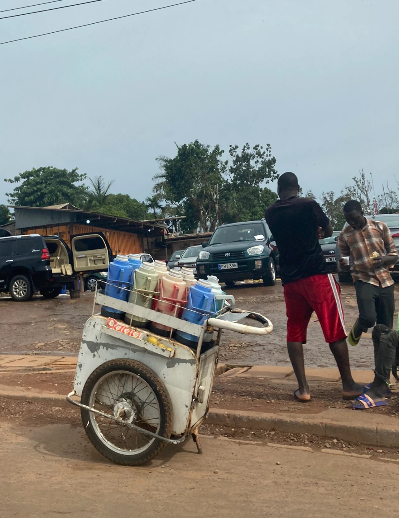 아래 사진에서 보이는 커다란 통과 컵들을 사람들이 들고 다니며 파는 것을 볼 수 있다. 아마도 차나 커피 같은데 정확히는 잘 모르겠다. 사 먹어보고 싶은데 우리 동네에는 팔러 다니는 사람이 없다.