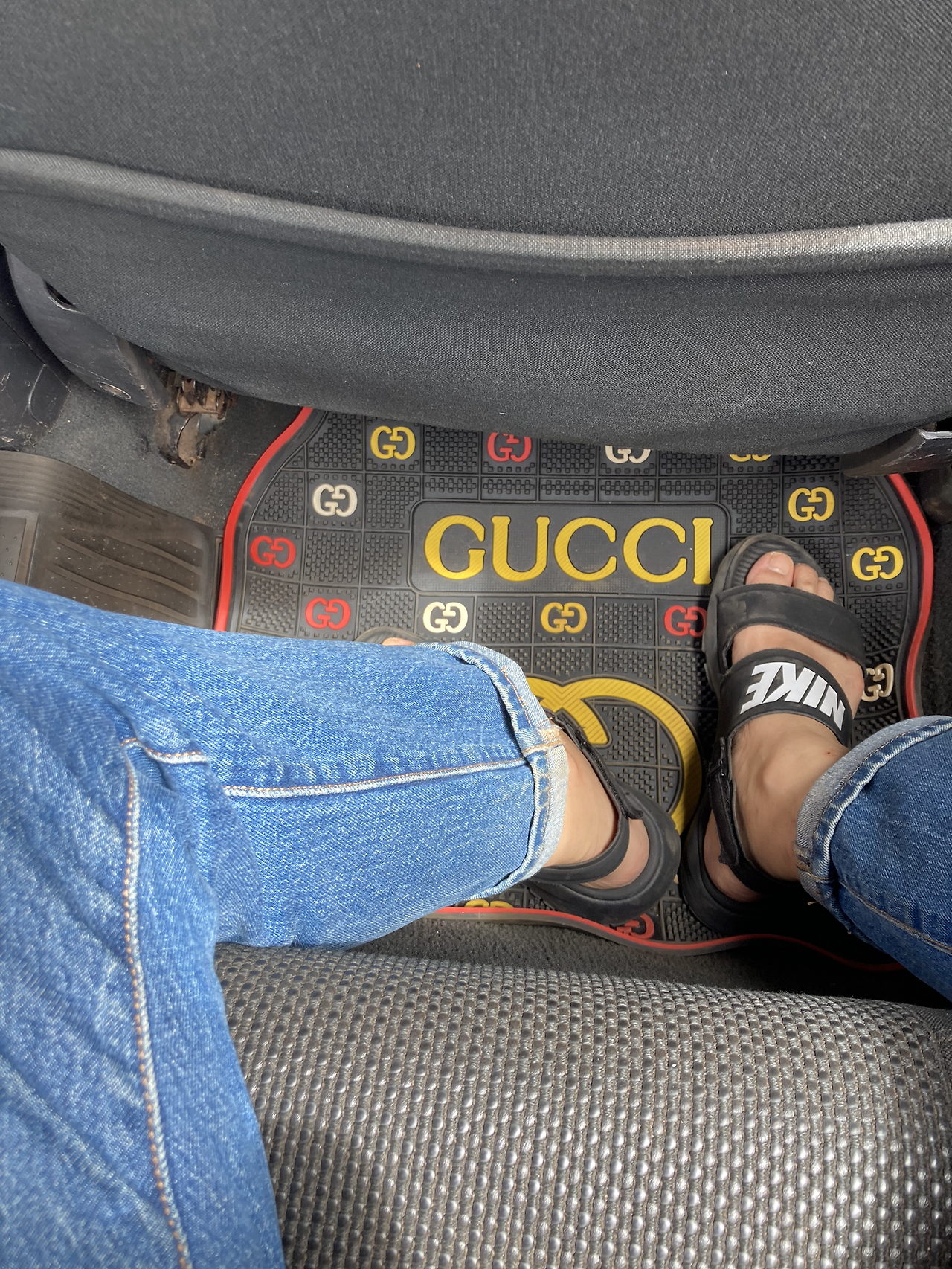 아래 사진은 오늘 탄 택시의 발판은 구찌였다. 돌아오는 택시는 루이뷔통 이곳에는 정말 정말 짝퉁 명품이 너무너무 많다. 그냥 전통 무늬면 충분히 아름답고 멋질 것 같은데 루이비통이나 구찌의 무늬로 만들어진 천으로 다양한 상품들이 나와 있는 것을 보면 여러모로 씁쓸하다. 브랜드를 입는 것을 뭐라고 하는 게 아니라 짝퉁으로라도 입을 수 있도록 형성된 분위기들이 그러하다. 우리 집에 도와주러 오는 헬퍼도 샤넬 st 가방에 구찌 st 샌들을 신고 온다. 종종 루이뷔통 st 무늬의 드레스를 입고 오기도 한다.