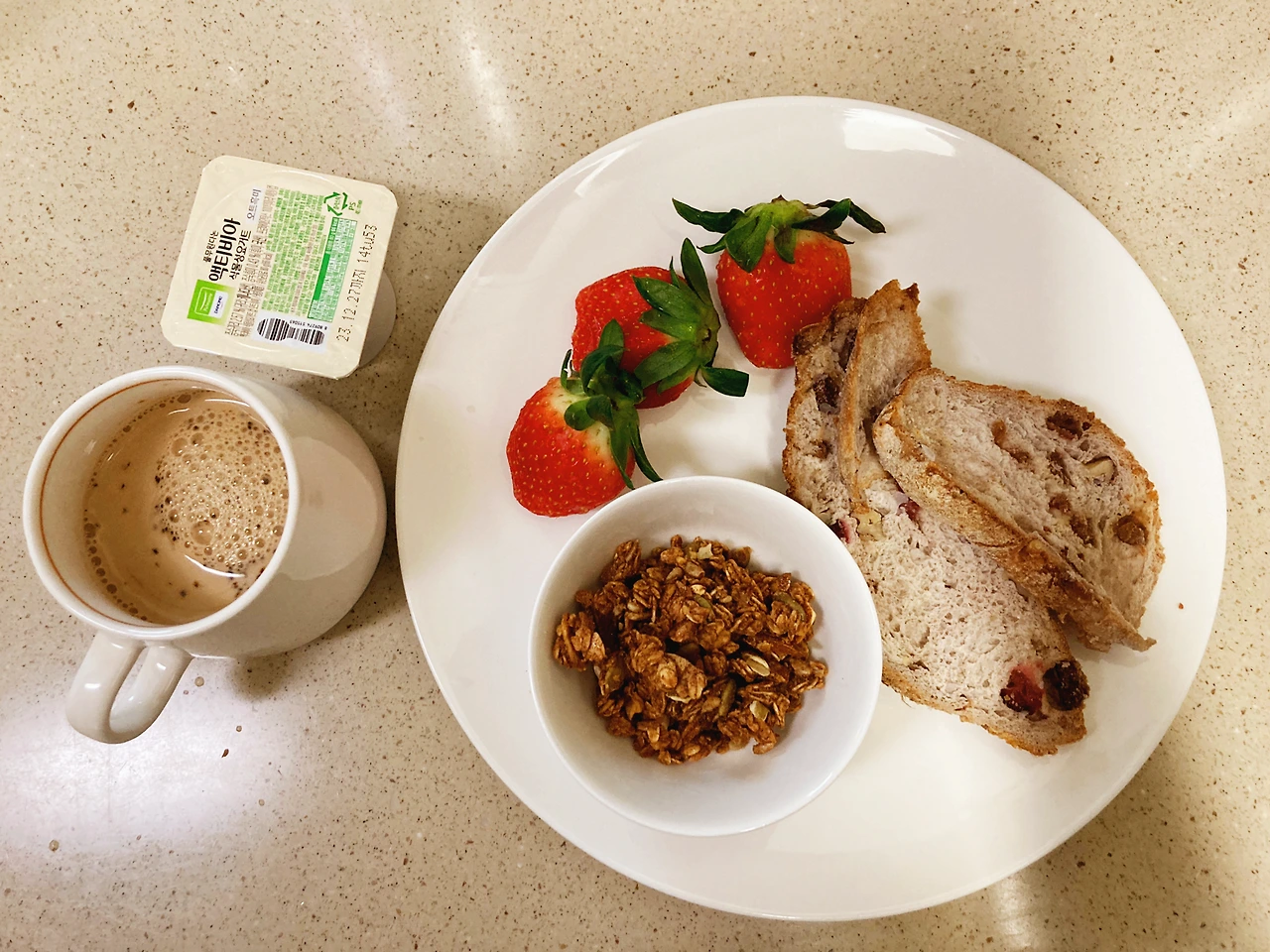 평소라면 아침을 간단히 먹는데 오늘은 잠든 아이 이불을 다시 덮어주고 나와서 양껏 차렸다. 비건 요구르트에 딸기에 그래놀라, 통밀빵까지 꺼내서 진수성찬을 차렸다. 아이가 아플수록 엄마는 더 힘을 내야 한다. 할 일도 여전히 많기에 기운이 필요했다. 오트밀크를 넣은 커피까지 완벽한 한상을 차려 꼭꼭 씹어 먹었다. 원래 밥을 정말 빨리 먹는데 전투모드에서는 꼭꼭 씹어 먹는다. 체하면 안 되기 때문이다.