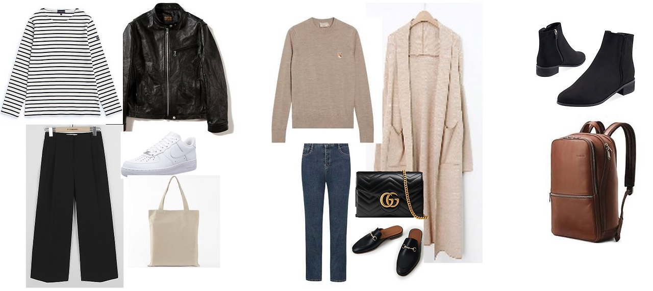아침마다 옷을 뭘 입을지 고민하는 것은 나에게 가장 큰 스트레스이다. 입을 옷이 없으면 속된 말로 멘붕에 빠진다. 매일 같은 옷을 입는 것은 더 견딜 수가 없다. 아래가 이번 2020 가을 옷 착장이다. ppt로 오려 붙여 가며 7-8개 정도를 맞췄고 이렇게 돌려가며 입고 있다. 정리하고 보니 한 시즌에 입는 옷이 몇 벌 안되었다. 이렇게 옷 착장을 맞추고 나서 아침마다 차오르던 스트레스가 확연히 줄어들었다. 마음에 안 드는 옷을 입고 나와서 하루 종일 옷을 사고 싶은 욕망에 시달리는 일도 없어졌다.