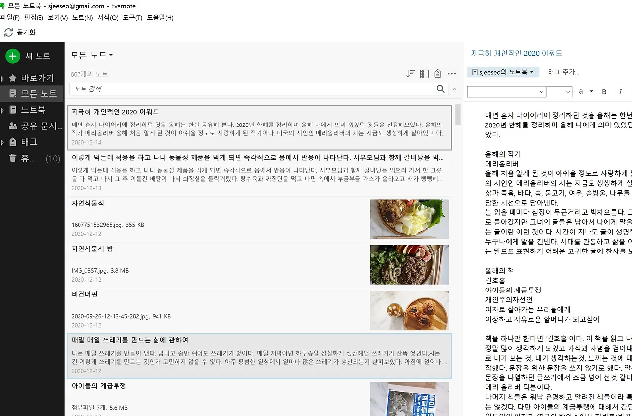 글 쓰는데 필요한 여러 가지 자료 관리하는데 최고의 앱이다. 무료 버전을 계속해서 쓰다가 올해부터 유료버전을 사용하고 있다. 이루 말할 수 없는 장점이 많다. 제일 좋은 것은 PC와 핸드폰 연동돼서 어디서든 메모를 하고 글을 고칠 수 있다는 것이다. 글 검색도 잘되고 인터넷 자료 클리핑도 잘돼서 글 쓰기에 도움이 정말 된다. 예전에 쓴 자료들도 모두 다 쌓여있고 다 검색이 잘 돼서 내 보물창고 1위 앱이다.