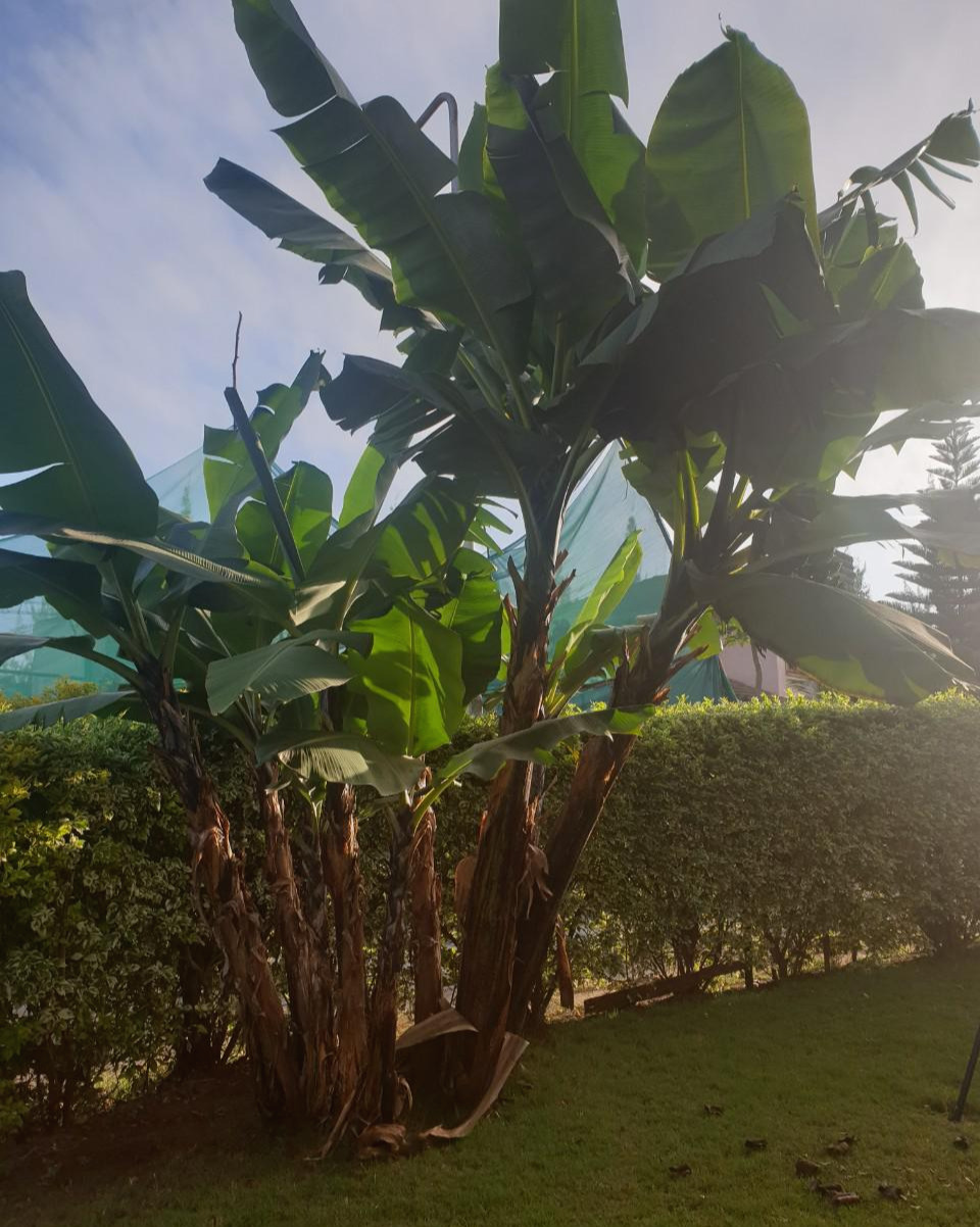마당에 있는 거대한 바나나 나무와 야옹이 남매 써니와 버니