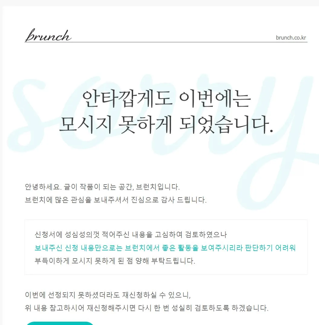 처음 브런치에 글을 쓰고 탈락 메일을 받고 굉장히 좌절했던 어느 날이 생각납니다. 이 정도면 되겠지 했던 글들이었는데 이 정도로는 안 되는 군을 깨닫는 순간이었습니다. 참고로 소비 단식일기의 초안 정도 되는 글들이었습니다. 이후에 다시 한번 도전을 했고, 후에 합격했던 글들은 소비 단식일기 1개, 이상한 나라의 82년생 엄마에 들어있는 글 1개, 그리고 잡문집 글 1개 이렇게 였습니다. 이때는 제출하면서도 아 될 것 같다는 강한 예감이 들었는데 정말 되어서 신기했습니다.