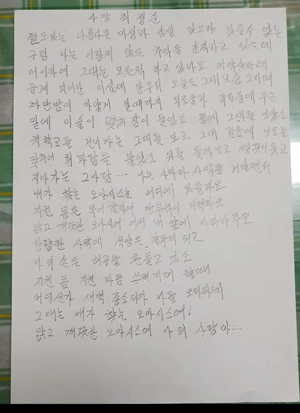 맑고 깨끗한 오아시스여. 나의 사랑아...