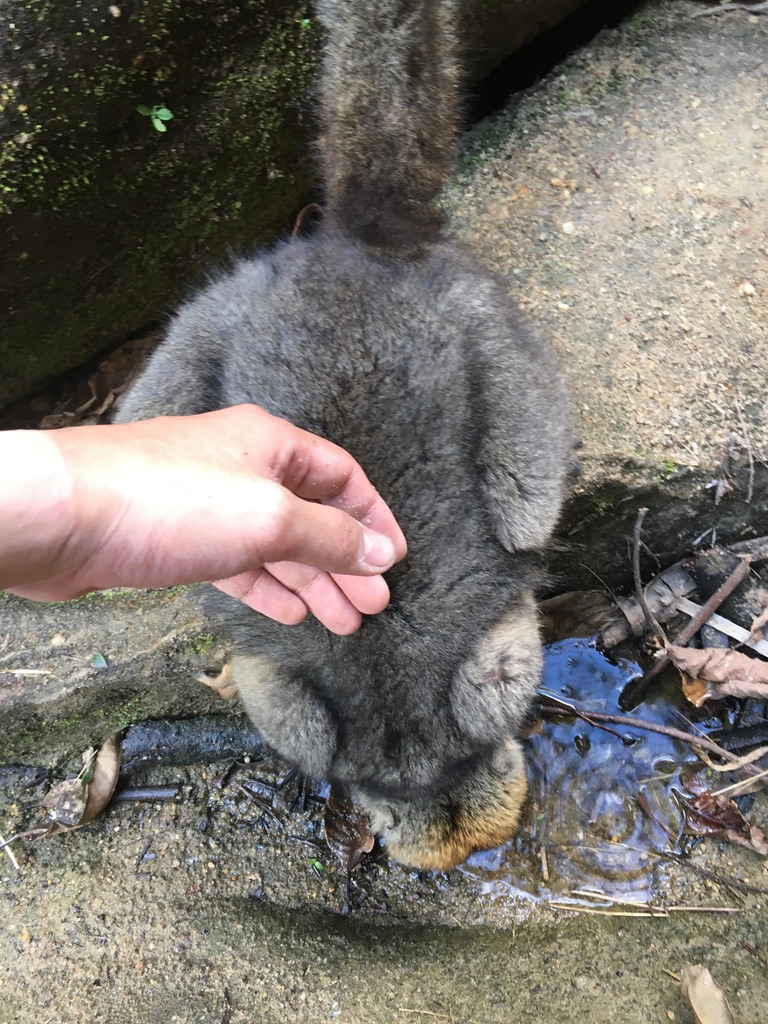 요즘은 우리나라 국립공원에서도 산짐승들에게 먹이를 주지 말라는 것이 흔히 요구되는 에티켓이 되어서 가까이 오는 여우원숭이들을 보고도 뭘 줘야겠다는 생각을 못하고 있었는데, 피터 아저씨는 거리낌 없이 먹이로 여우원숭이들을 유인한다. 가이드 입장에서는 관광객들의 만족이 제일 중요한 요소일 것이겠고 아무래도 이렇게 만져볼 수 있을 정도로 가까이 데려다주는 것을 방문객들이 좋아했겠지? 사실 나도 이래도 되나 하는 마음이 있긴 했지만 막상 바로 옆까지 오고, 털도 쓰다듬을 수 있으니 신기하긴 했다. 아마 이런 대접에 익숙한 듯이 사람에 대한 큰 두려움이나 거부감도 없어 보였다.