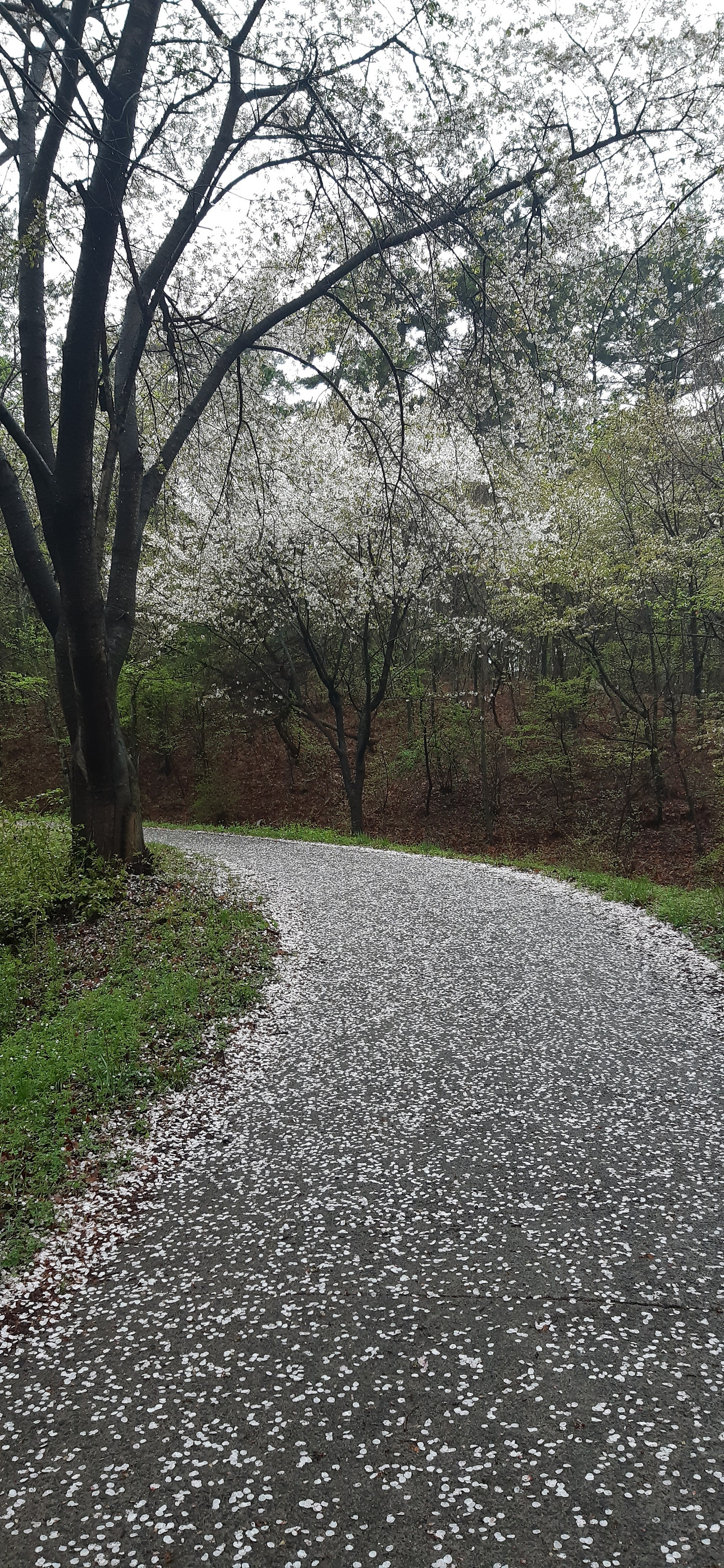 *우중에 팔봉산 임도를 걸었다. 다소 청승맞긴 했지만 인적이 없어 호젓해 좋았다. 비바람에 떨어진 벚꽃 잎을 대하니 감흥이 있어 시 한 수를 지어봤다. 3, 4구는 공자의 제자 자로가 스승에게 '죽음'의 의미를 묻자 공자가 "아직 삶의 의미도 다 모르는데, 내 어찌 죽음의 의미를 알겠느냐"라고 답한 내용을 원용한 것이다. 나이를 먹어서 그런지, 공자의 말이 젊은 날에 비해 한결 묵직하게 다가온다.