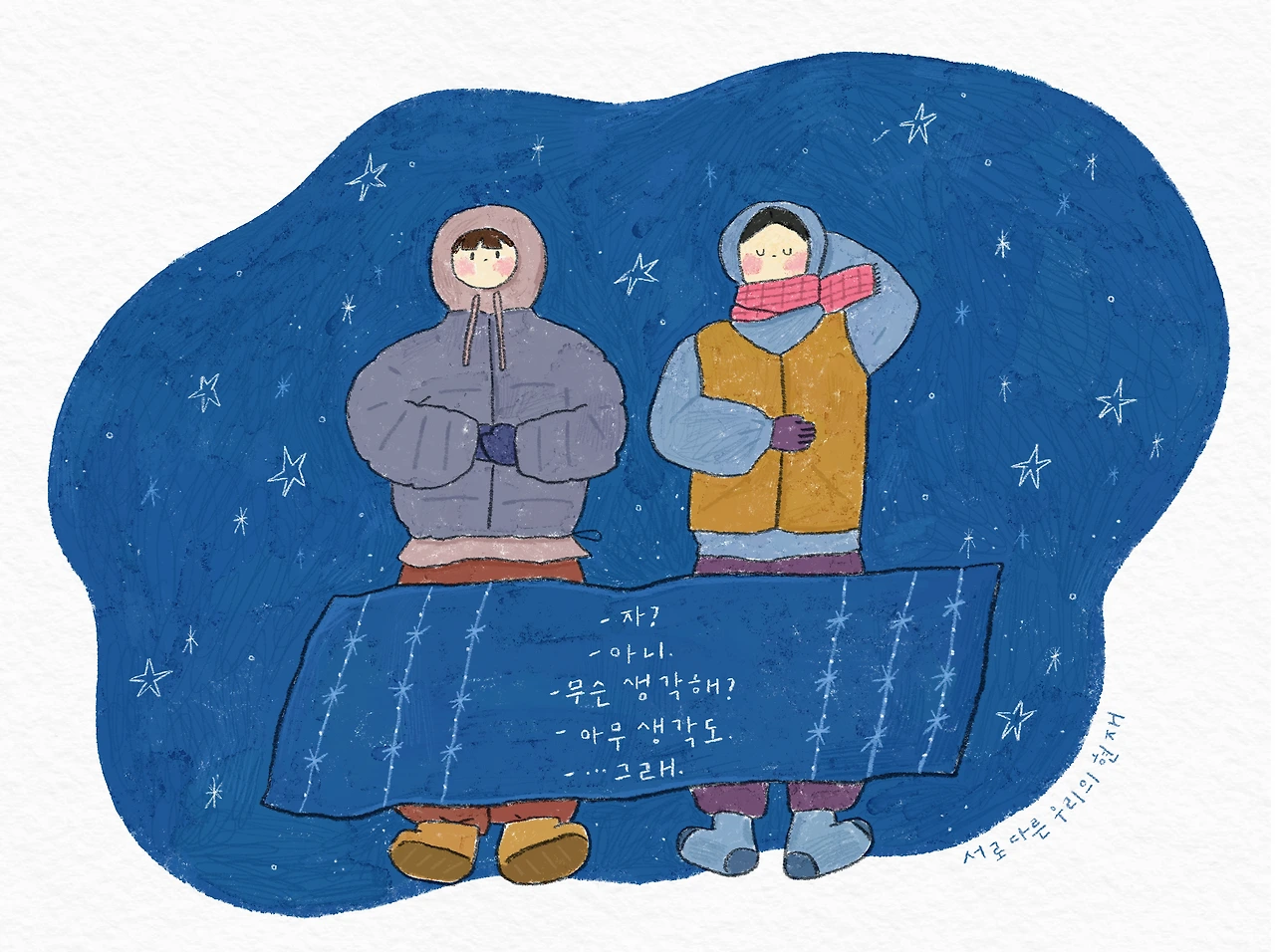 여기서 시점이 나에서 너에게로 옮겨갔다. 이는 기적 같은 일이다. 너를 살피고 헤아려보는 것은 상대를 향한 연민으로 이어지기 때문이다. ‘상대에게 무슨 일이 생겼나?’, ‘혹시 마음이 힘든 상태는 아닐까?’ 이러한 질문 앞에 섰을 때 비로소, 나를 향하고 있던 강한 시선을 옮길 수 있는 여지가 생긴다.