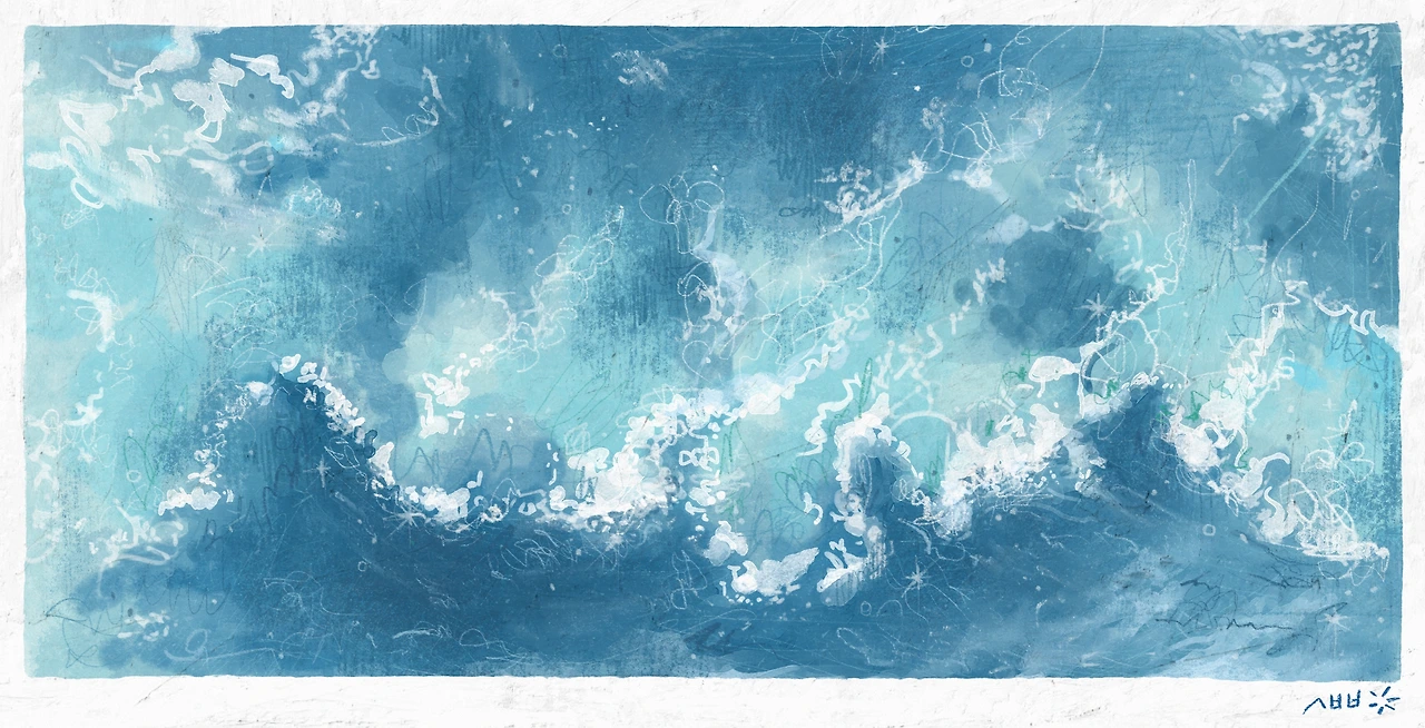 높이 솟아올라 한 순간에, 그러나 때마다 그 높이와 모양을 달리하며 찬란하게 부서지는 파도 같다. 힘을 다해 부서지는 파도가 시원하고 힘차다. 어쩌면 푸르른 하늘을 닮아 그 깊이와 넓이를 아는 파도와 같은 삶을 살아가고 있는 건 아닐까. 감히 거침없는 파도를 노니는 꿈을 꾼다.