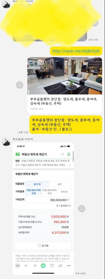 아파트 가격이 얼마나 오르느냐에 따라 공동명의의 이점의 크기가 달라질 수 있기에 '나중에 집값이 오르면 그 때 공동 명의로 전환하면 되지 않을까' 생각도 해보았으나, 개인 명의에서 공동 명의로 전환하게 될 때에는 증여세, 취득세 등 자산의 분할 및 증여/취득에 부여되는 세금을 또 내야 하더이다. 이래저래 계산을 해보았을 때 공동 명의가 답으로 귀결되어 우리는 공동 명의로 다시 계약서를 작성하게 된 것이다. (지금은 차분히 글을 써내려가지만, 당시엔 정말 머리가 아팠다. 급박한 상황 속에서 중대한 의사결정을 무지몽매한 상태로 진행했어야 했기 때문에...)