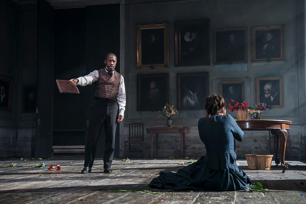 공연장에 들어서면 바로크 시대 그림처럼 연출되어있는 사실주의 무대를 볼 수 있다. 이 거대하지만 음울하고 불안정한, 그리고 낡아버린 저택의 모습은 그 자체로 무너질 유산처럼 보인다. 완전한 자유주의로 변화하려는 세상과 그것을 저지하려는 자들, 그리고 그 사이에서 갈등하는 인물들이 이 극의 주인공들이니 무대에서 느껴지는 분위기가 극을 잘 보여준다고 생각했다. 다 떠나서 무대 자체가 예쁘지 않은가? 특히나 조명의 역할이 두드러진다고 느꼈는데, 사실주의 조명으로 분위기를 연출함과 동시에 마치 하나의 그림 같은 느낌을 내는 것이 정말 좋았다. 런던에서 보는 많은 공연들이 공연 중간중간마다 놀라울 정도로 고전 명화 같은 연출을 해낼 때가 있는데, 여기엔 늘 저런 그림 같은 조명 디자인이 큰 역할을 한다.
