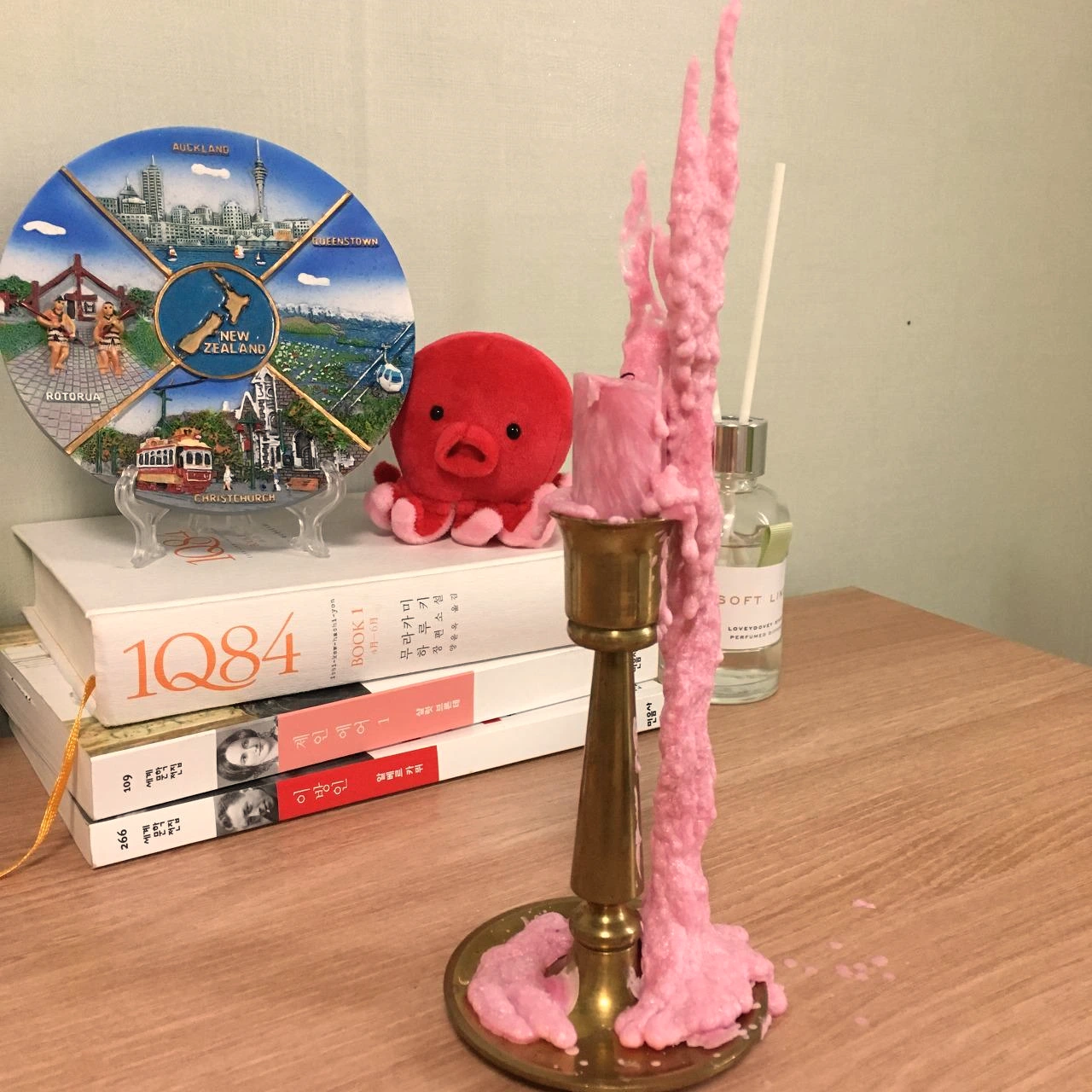 하나의 초가 타들어가는데, 초의 모양은 시시각각 바뀌면서 자세히 보면 제각각 타올라요. 초의 심지와 원래의 초 형태와, 그 옆에 나란히 타들어가며 모양이 변하는 촛농도 저마다의 속도로 타들어가요. 참 예뻐요. 자연스럽게 촛농이 떨어지는 것도. 모양이 변하는 것도. 결국은 사라지게 되는 것도. 정말 하염없이 보게 만들어요.