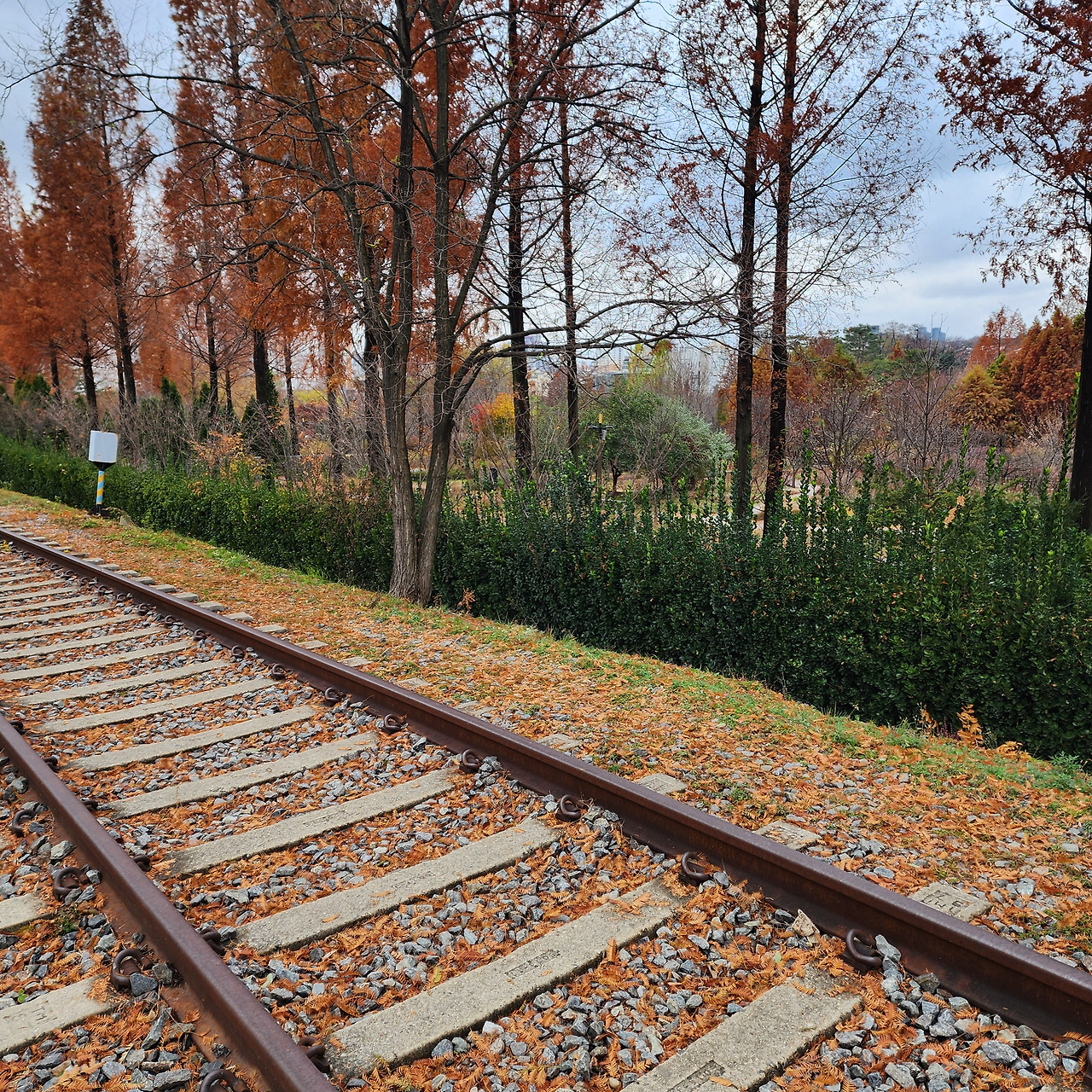 항동저수지와 수목원이 가까워질 때면 철길 주변은 정비가 되고 사람들이 찾는 장소로 변모한다. 부식된 레일의 색깔과 단풍의 색깔이 비슷해질수록 사진이 감각적으로 잘 나온다. 내가 찍어서 보여준 사진 때문에 몇 명 정도 이곳을 찾았다고 했는데 공통된 의견은 다음과 같았다.