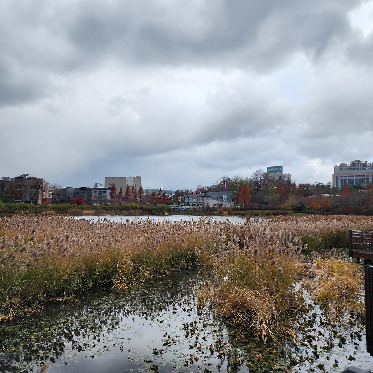 혼자서 저 먼 길을 걸어갈 경우 딱 알맞은 말이라 생각하여 나는 갈 때마다 저 위치에서 사진을 찍어놓는다. 다시 원위치로 되돌아가고 싶은 마음이 생길 때즈음 적절한 위치에 새겨진 메시지, 인생은 혼자라고 하지만 저 짧은 말 하나가 울림이 상당하다. 한참을 뭔가 해석해 보려다가 내가 가진 생각으로는 도저히 무리라고 생각하여 일단 사진 찍는 걸로 만족하는 편이다. 그리고 바로 옆에 펼쳐진 항동저수지와 산책길을 걷는다. 길게 이어진 철길과 달리 저수지 공원은 넓은 장소에 갖가지 동, 식물들이 살고 있다.
