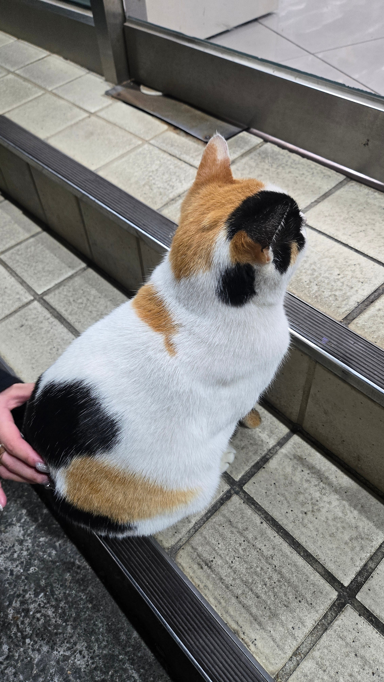 다수의 사람들이 편의점 앞에 있던 이유는 물건을 사기 위해서 기다리는 것이 아니라 입구에서부터 자리를 잡고 있는 한 삼색 냥이를 보기 위해서였다. 신기하게 고양이는 어딜 움직이지 않고 편의점 입구 앞에서 고정자세로 한참을 버티고 서 있었다. 편의점 안에서 계산을 하고 있는 사장님을 보는 것인지 아님 편의점을 오가는 손님들을 응대하는 것인지 알 수는 없지만 그 주변을 지나가는 사람들은 그 고양이의 존재만으로도 이목을 끌며 가끔 츄르 같은 조공을 하고 있다. 나도 삼색이의 머리와 등을 쓰다듬어 봤는데 미동도 없이 편의점의 입구를 계속 응시하고 있었다.