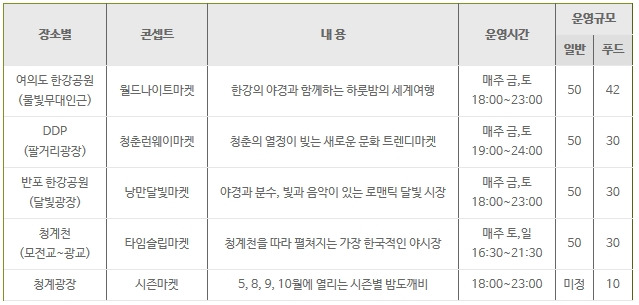 또한 상설로 운영되는 4곳 외에 청계천에서는 시즌 마켓이 열린다고 해요!