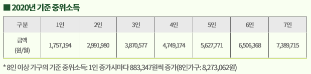 월소득을 기준으로 1인 가구의 경우 1,757,194원, 2인 가구의 경우 2,991,980원, 3인 가구의 경우 3,870,577원, 4인 가구의 경우 4,749,174원, 5인 가구의 경우 5,627,771원 이하인 경우 지원대상에 포함될 것으로 판단됩니다.