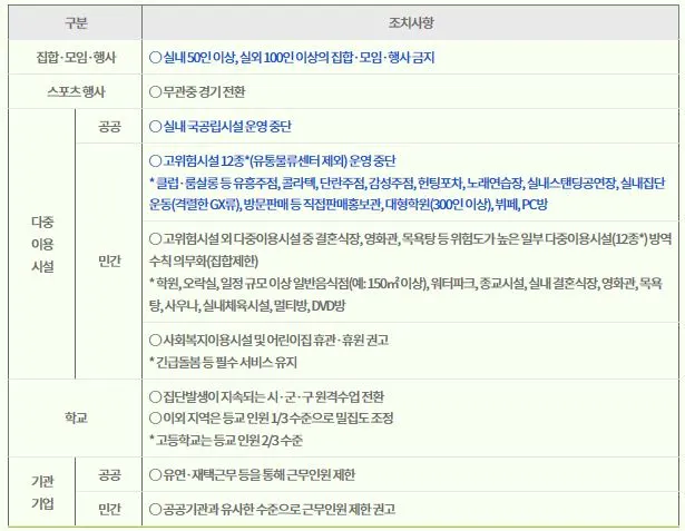 ※ 파란색 글씨는 8월 19일 0시 기준으로 새롭게 적용되는 조치