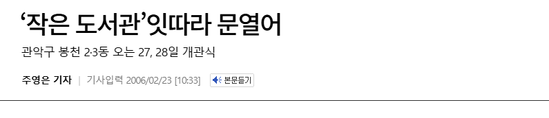 관악저널, 2006 「봉천2,3동에 ‘작은도서관’ 잇따라 개관」