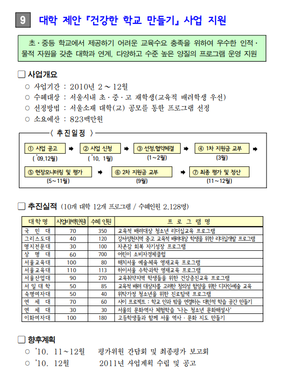 2010년 서울시의회 재정경제위원회 행정사무감사 주요업무보고