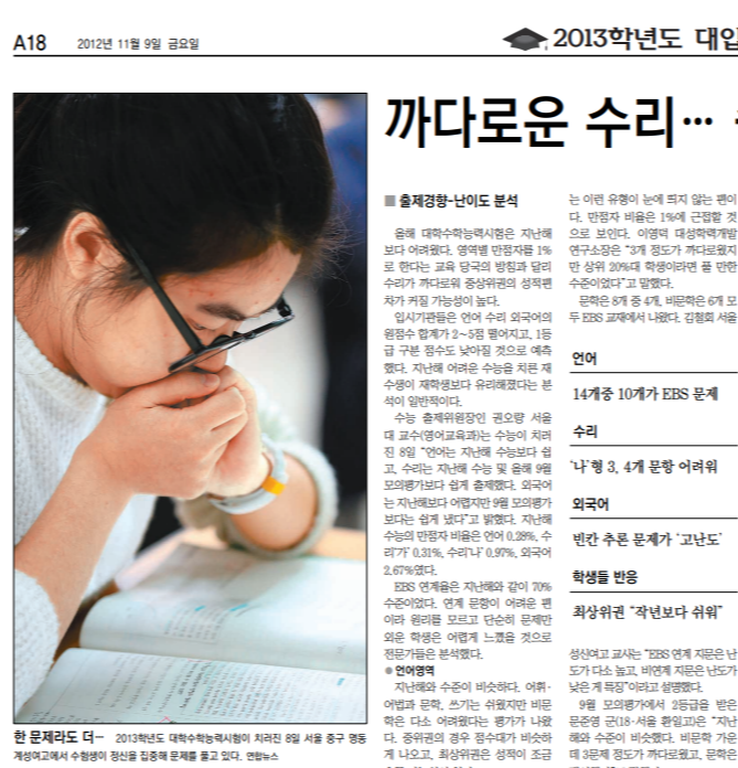 2012년 11월 8일 목요일, 12년간의 학창시절이 마무리되었다. 2012년 11월 9일 동아일보 보도.