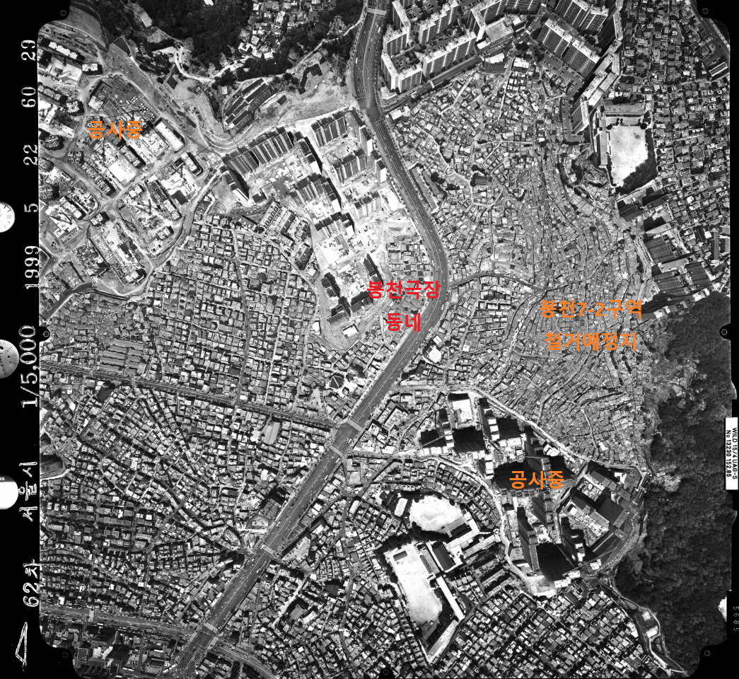 큰길 건너 현대아파트(봉천 1 구역, 92년 입주)를 제외하면, 나머지 '봉천 신도시' 아파트들 중에선 우리 아파트가 간발의 차이로 먼저 입주한 아파트였다. 그랬기에 막바지 공사 현장, 철거지 현장에 대한 기억은 물론이고 '봉천동 달동네'를 상징하는, 아직 철거가 되지 않았던 마지막 판잣촌의 기억도 있다. 물론 나는 우리가 살고 있는 '새 아파트'가 서 있는 땅 역시 이전에는 그와 똑같은 판자촌이었다는 사실은 전혀 알지 못했다.