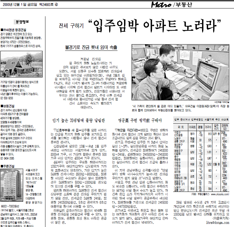 [부동산] 전세 구하기 "입주임박 아파트 노려라" - 불경기로 잔금 못내 임대 속출 (2000)