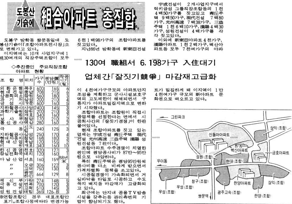내가 태어나서 여섯 살 때까지 살던 곳이었던 쌍문동은 1980년대 후반에 개발된 중산층 아파트촌이었다. 특히 내가 살았던 그 쌍문동 아파트촌은 직장조합아파트 밀집지였다. 직장조합아파트란 1991년에 대한민국을 강타한 '수서지구 택지 특혜분양사건'과 연관되어 있는 제도다. 예전에는 직장에서 무주택자 사원들이 모여 '조합'을 결성한 후에 아파트를 분양받을 수 있는 제도가 있었다. 어릴 때부터 조금 신기했던 것이 부모님이 처음 신혼 생활을 시작한 곳은 부천 역곡의 한 빌라였다고 하는데, 1년 반만에 쌍문동의 아파트로 이사를 갔다는 점이다. 대기업 사원이었던 아버지와, 직장조합 아파트 간의 연결고리가 있다고 생각이 든다.