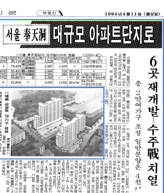 서울특별시 관악구 봉천동 지역은 1970년대와 1980년대를 거치며 대표적인 '달동네'로 유명했던 지역이었다. 그러나, 1990년대에 접어들며 이 지역의 판자촌, 무허가 주택들은 모두 철거되고, 그 자리는 철거 및 신축 아파트 공사기간을 거쳐 21세기가 시작될 즈음, 20층이 넘는 고층 아파트로 채워졌다.