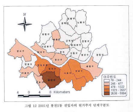 2003년에 '30년 정도 아파트에서만 살았다'는 것은 1970년대부터 아파트에 살았다는 것으로 이들이 바로 강남 1세대다. 보면 잠원동, 방배동을 거쳐 사당동, 행당동으로 이동했다고 하는데 동명만 적혀있는데도 이 두 곳이 어디를 의미하는지 알수 있다. 사당 우극신(우성, 극동, 신동아)과 행당 대림한진 지역이다. 이들의 그 다음 목적지가 바로 이곳 봉천. 모두 서울 내부 합동재개발지역이다. 강남에서 학창시절을 보낸 '자녀'들이 커서 분가할 때 성동, 동작의 신축 아파트에서 신혼을 시작하는 경우는 지금도 현재진행형으로, 흑석동, 사당2동, 사당3동, 옥수동을 중심으로 2010년~2020년대식 신축 아파트들이 올라가고 있고 이곳에서 이제 2대를 넘어 3대 대물림이 발생하고 있다.