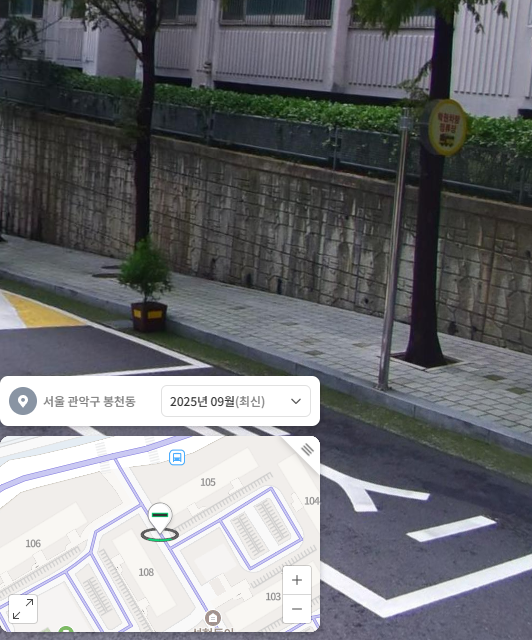 나중에 안 사실이지만, 아이들이 저 담을 넘어 드림타운 방향으로 다닌다는걸 알아챈 어른들은, 그 담들에 철조망을 덧붙이고 나무를 추가로 심었다. 그렇게 25년이 흐른 현재 그 담은 뾰족한 철조망과 풍성해진 나무로 덮여 있다. 은천로39길에서 우리 아파트를 바라보는 담이다. 원래는 저렇게 나무가 풍성하지 않았고 철조망도 없었다.